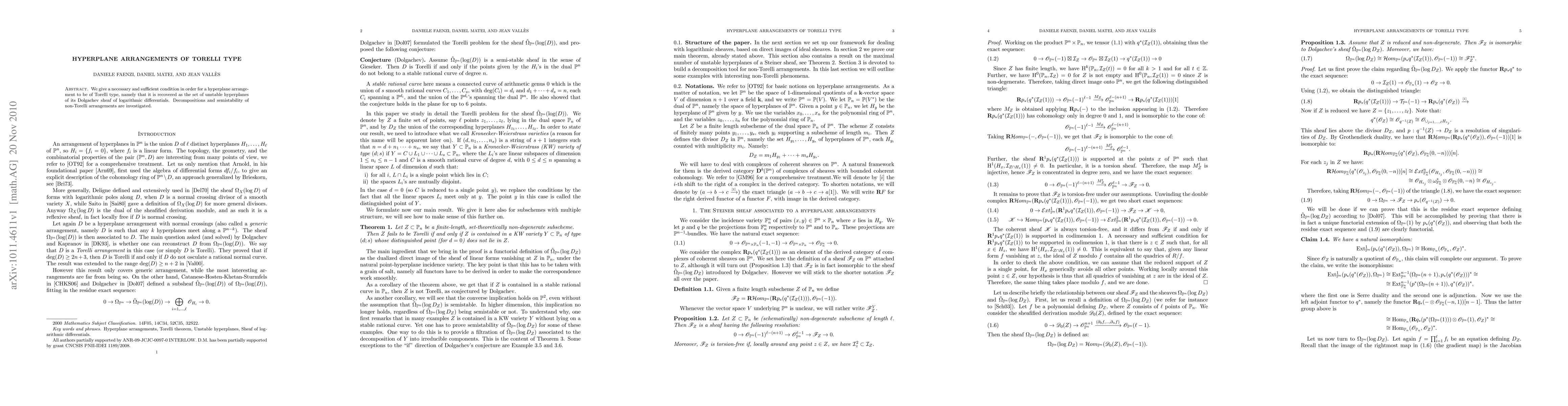 Researchers find a condition that determines if a hyperplane arrangement is of Torelli type: it must equal the set of unstable hyperplanes from its logarithmic differential sheaf. This breakthrough aids in understanding non-Torelli arrangements.