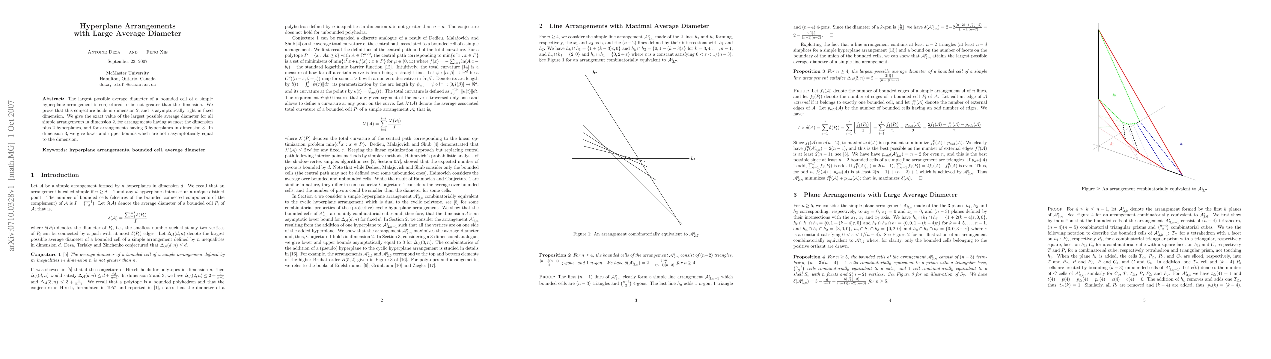 The largest possible average diameter of a bounded cell of a simple hyperplane arrangement is conjectured to be not greater than the dimension. We prove that this conjecture holds in dimension 2, and is asymptotically tight in fixed dimension. We give the exact value of the largest possible average diameter for all simple arrangements in dimension 2, for arrangements having at most the dimension plus 2 hyperplanes, and for arrangements having 6 hyperplanes in dimension 3. In dimension 3, we give lower and upper bounds which are both asymptotically equal to the dimension.