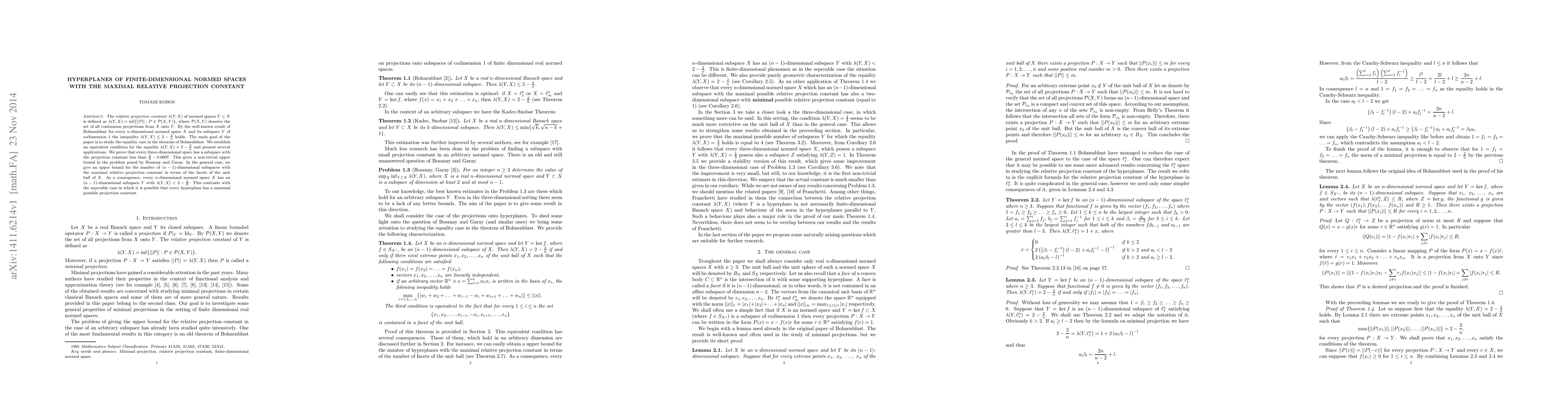 The \emph{relative projection constant} $\lambda(Y, X)$ of normed spaces $Y \subset X$ is defined as $\lambda(Y, X) = \inf \{ ||P|| : P \in \mathcal{P}(X, Y) \}$, where $\mathcal{P}(X, Y)$ denotes the set of all continuous projections from $X$ onto $Y$. By the well-known result of Bohnenblust for every $n$-dimensional normed space $X$ and its subspace $Y$ of codimension $1$ the inequality $\lambda(Y, X) \leq 2 - \frac{2}{n}$ holds. The main goal of the paper is to study the equality case in the theorem of Bohnenblust. We establish an equivalent condition for the equality $\lambda(Y, X) = 2 - \frac{2}{n}$ and present several applications. We prove that every three-dimensional space has a subspace with the projection constant less than $\frac{4}{3} - 0.0007$. This gives a non-trivial upper bound in the problem posed by Bosznay and Garay. In the general case, we give an upper bound for the number of $(n-1)$-dimensional subspaces with the maximal relative projection constant in terms of the facets of the unit ball of $X$. As a consequence, every $n$-dimensional normed space $X$ has an $(n-1)$-dimensional subspace $Y$ with $\lambda(Y, X) < 2-\frac{2}{n}$. This contrasts with the seperable case in which it is possible that every hyperplane has a maximal possible projection constant.