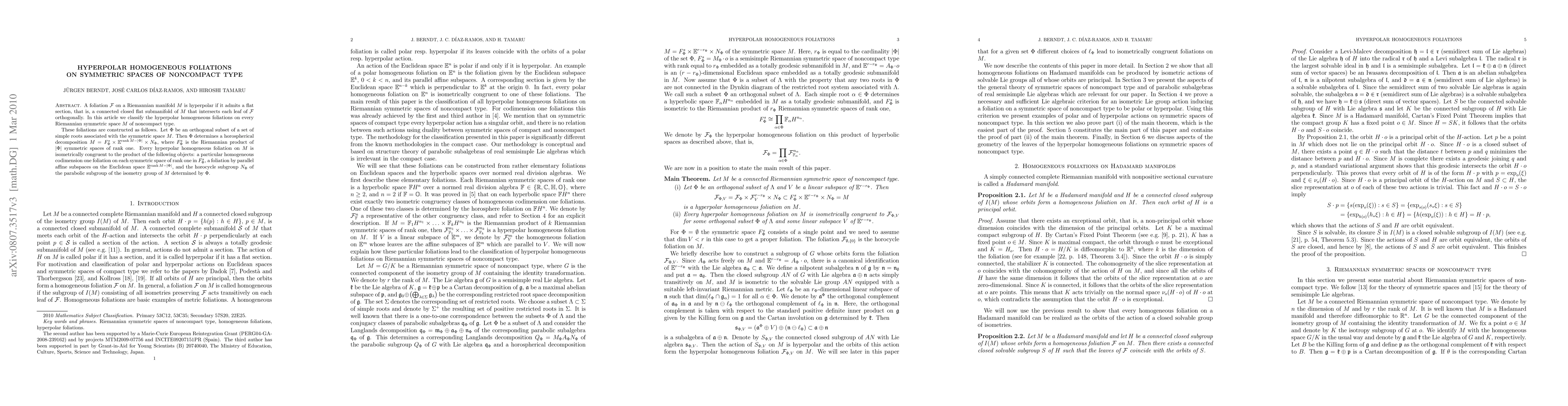 This paper classifies hyperpolar homogeneous foliations on Riemannian symmetric spaces of noncompact type, identifying those foliations that include a flat section intersecting each leaf orthogonally. The classification is achieved through an examination of the geometric and topological properties of these spaces.