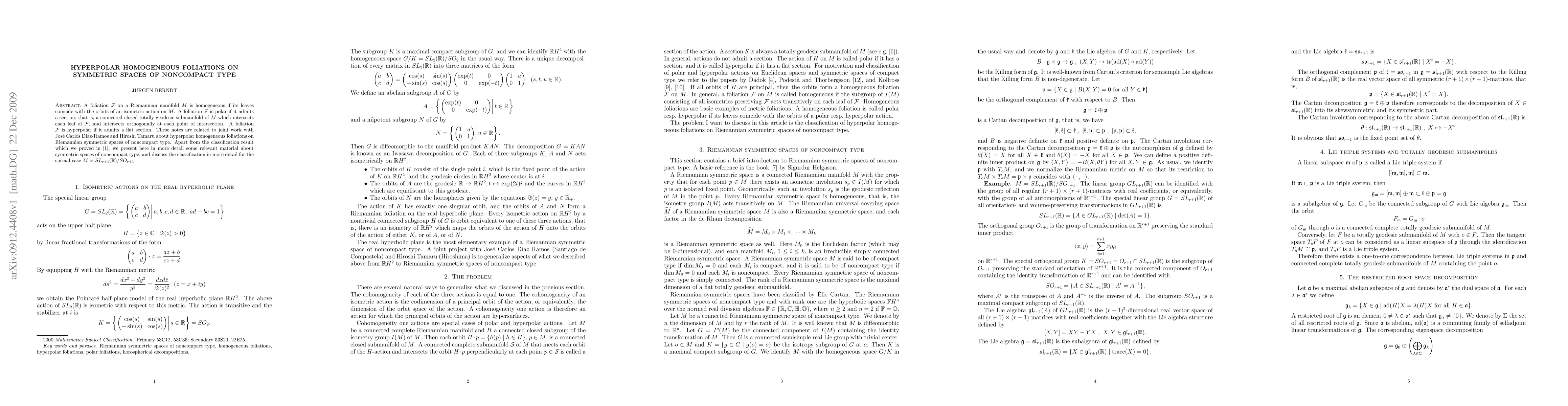 A foliation F on a Riemannian manifold M is homogeneous if its leaves coincide with the orbits of an isometric action on M. A foliation F is polar if it admits a section, that is, a connected closed totally geodesic submanifold of M which intersects each leaf of F, and intersects orthogonally at each point of intersection. A foliation F is hyperpolar if it admits a flat section. These notes are related to joint work with Jose Carlos Diaz-Ramos and Hiroshi Tamaru about hyperpolar homogeneous foliations on Riemannian symmetric spaces of noncompact type. Apart from the classification result which we proved in arXiv:0807.3517v2 [math.DG], we present here in more detail some relevant material about symmetric spaces of noncompact type, and discuss the classification in more detail for the special case M = SL_{r+1}(R)/SO_{r+1}.