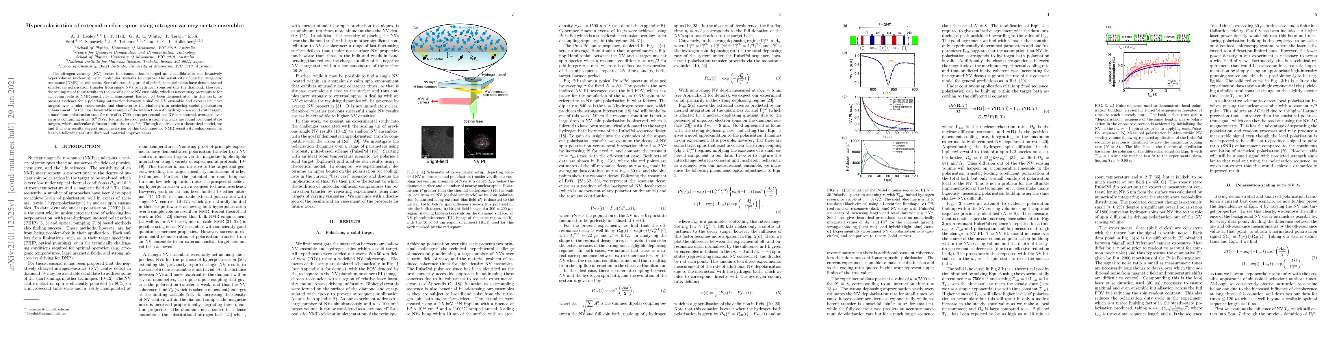 Researchers demonstrate polarisation transfer from a dense nitrogen-vacancy ensemble to external nuclear spins, achieving a maximum rate of 7500 spins per second per NV, with implications for improving NMR sensitivity in molecular systems.