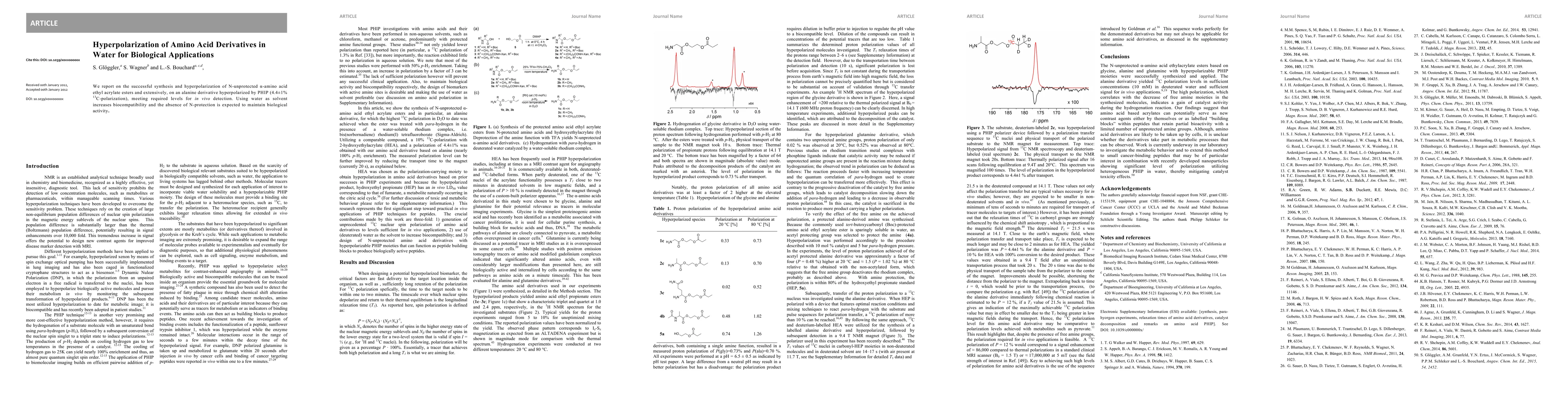 We report on the successful synthesis and hyperpolarization of N unprotected {\alpha} amino acid ethyl acrylate esters and extensively, on an alanine derivative hyperpolarized by PHIP (4.4$\pm$1% $^{13}$C-polarization), meeting required levels for in vivo detection. Using water as solvent increases biocompatibility and the absence of N-protection is expected to maintain biological activity.