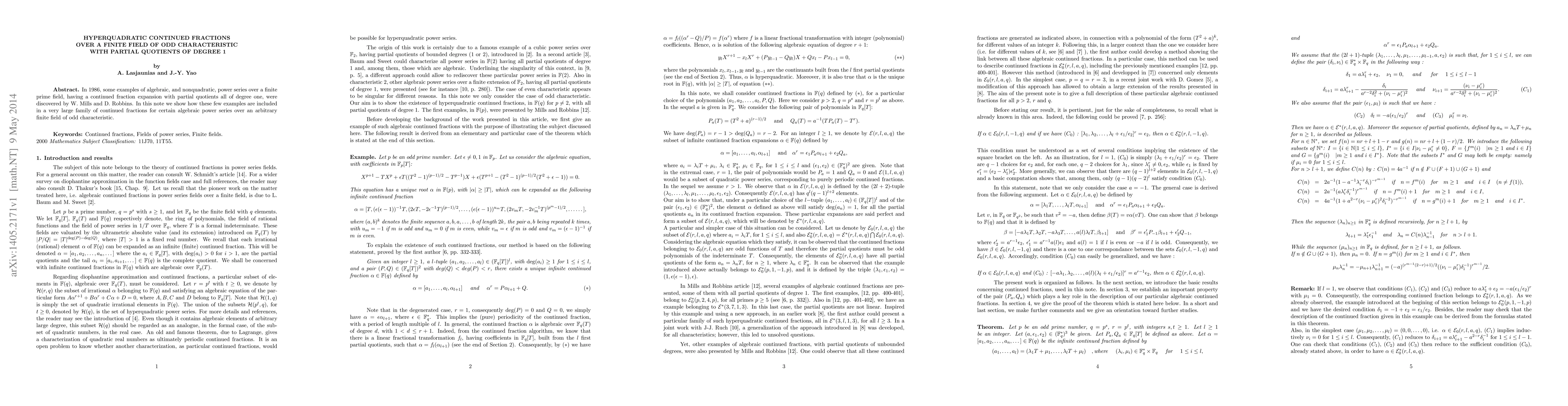 Summary: This paper extends the 1986 findings by Mills and Robbins on nonquadratic power series with continued fraction expansions over finite prime fields, demonstrating that these examples are part of a broader class of such continued fractions over any finite field of odd characteristic.