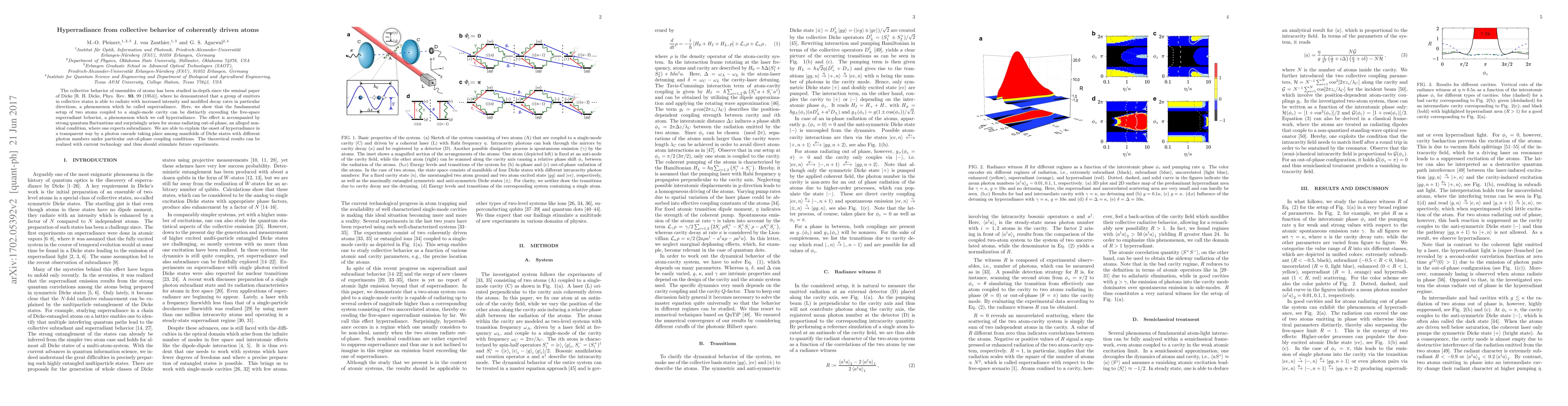 This paper demonstrates a phenomenon called hyperradiance, where coherently driven atoms in a cavity exhibit significantly enhanced radiative intensity compared to superradiance, even when atoms radiate out-of-phase. This effect is explained by photon cascades among Dicke states under specific coupling conditions.