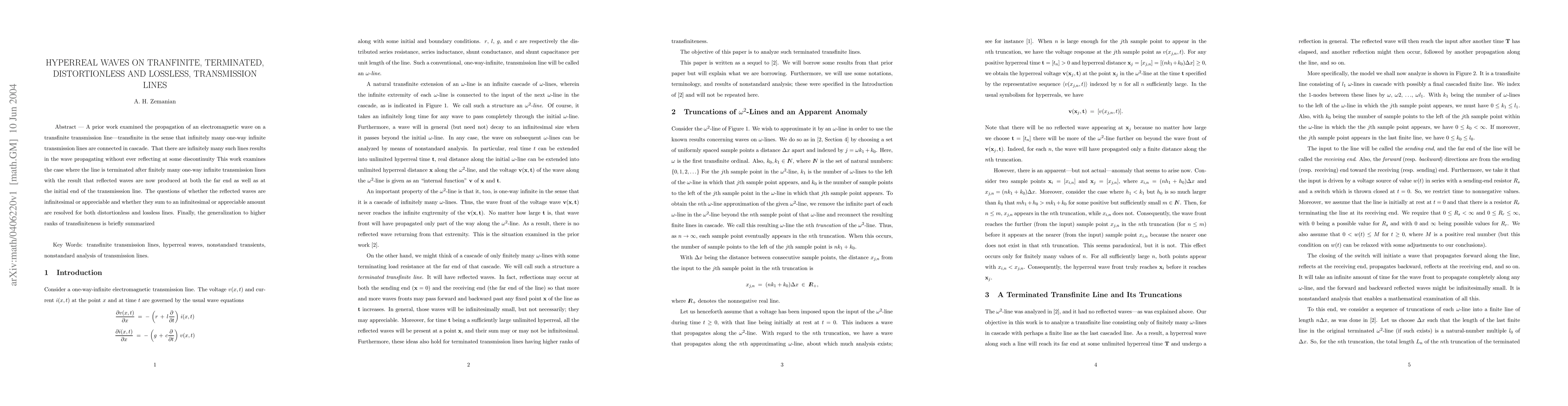 A prior work (see Chapter 8 of the book, ``Graphs and Networks: Transfinite and Nonstandard,'' Birkhauser-Boston, Cambridge, Mass., USA, 2004) examined the propagation of an electromagnetic wave on a transfinite transmission line, transfinite in the sense that infinitely many one-way infinite transmission lines are connected in cascade. That there are infinitely many such one-way infinite lines results in the wave propagating without ever reflecting at some discontinuity. The present work examines the cascade where the cascade terminates after only finitely many one-way infinite transmission lines, with the result that reflected waves are now produced at both the far end as well as at the initial end of the transfinite transmission line. The question of whether the reflected waves are infini tesimal or appreciable and whether they sum to an infinitesimal or appreciable amount are resolved for both distortionless and lossless lines. Finally, the generalizations to higher ranks of transfiniteness is briefly summarized.