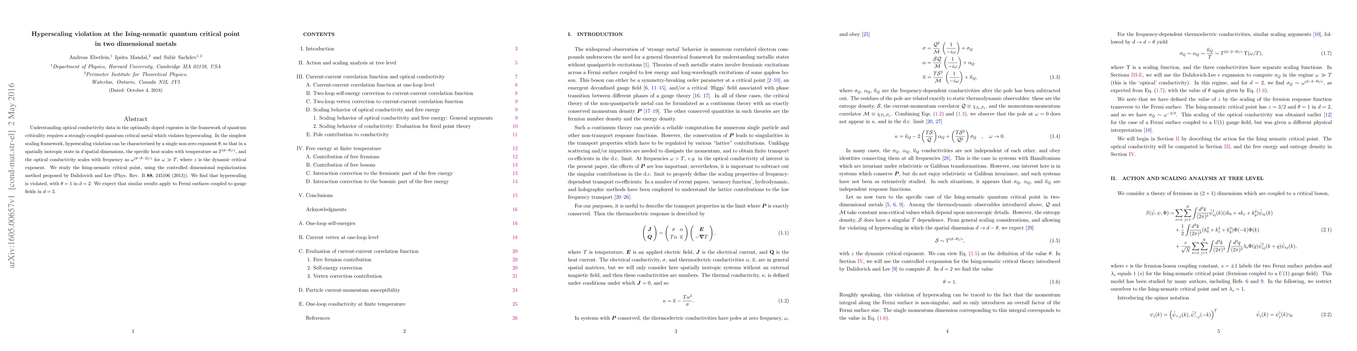 The paper presents a controlled dimensional regularization method to compute the optical conductivity and free energy at the Ising-nematic quantum critical point in two-dimensional metals, revealing hyperscaling violation with $\theta = 1$.
