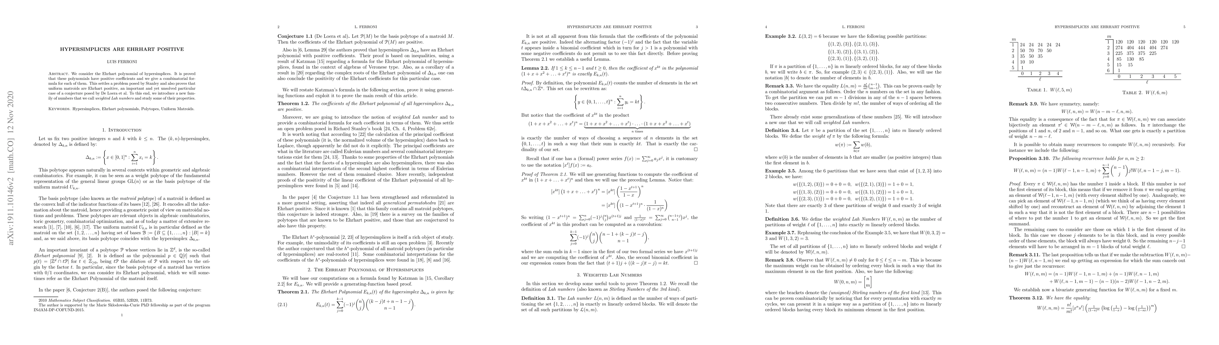This paper proves that the Ehrhart polynomials of hypersimplices have positive coefficients, providing a combinatorial formula for them. It also resolves a problem by Stanley and confirms that uniform matroids are Ehrhart positive, introducing new weighted Lah numbers in the process.