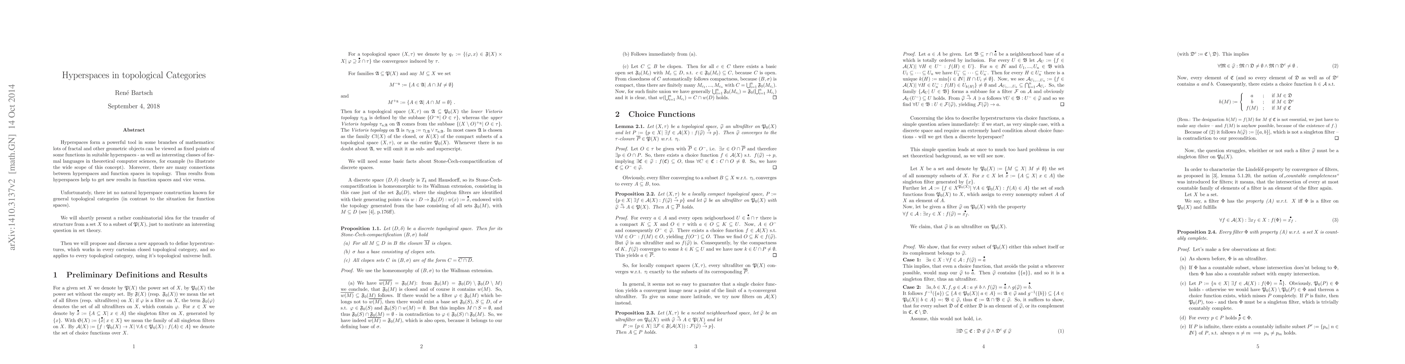 Hyperspaces form a powerful tool in some branches of mathematics: lots of fractal and other geometric objects can be viewed as fixed points of some functions in suitable hyperspaces - as well as interesting classes of formal languages in theoretical computer sciences, for example (to illustrate the wide scope of this concept). Moreover, there are many connections between hyperspaces and function spaces in topology. Thus results from hyperspaces help to get new results in function spaces and vice versa. Unfortunately, there ist no natural hyperspace construction known for general topological categories (in contrast to the situation for function spaces). We will shortly present a rather combinatorial idea for the transfer of structure from a set $X$ to a subset of $\mathfrak{P}(X)$, just to motivate an interesting question in set theory. Then we will propose and discuss a new approach to define hyperstructures, which works in every cartesian closed topological category, and so applies to every topological category, using it's topological universe hull.