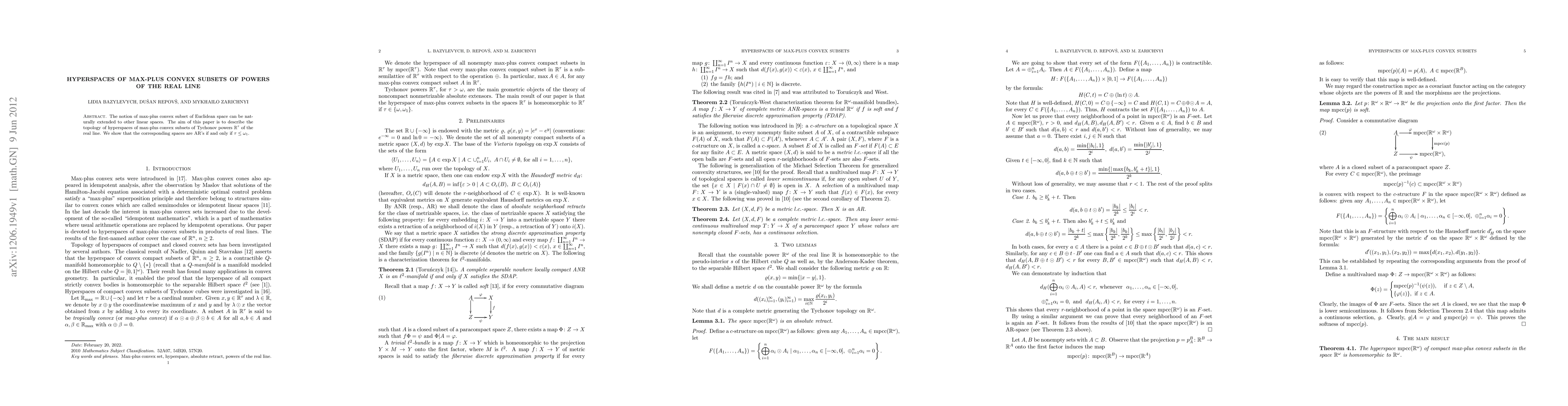 This paper explores the topology of hyperspaces formed by max-plus convex subsets in Tychonov powers of the real line, demonstrating that these spaces are AR's if and only if the cardinality of the power is less than or equal to $\omega_1$.