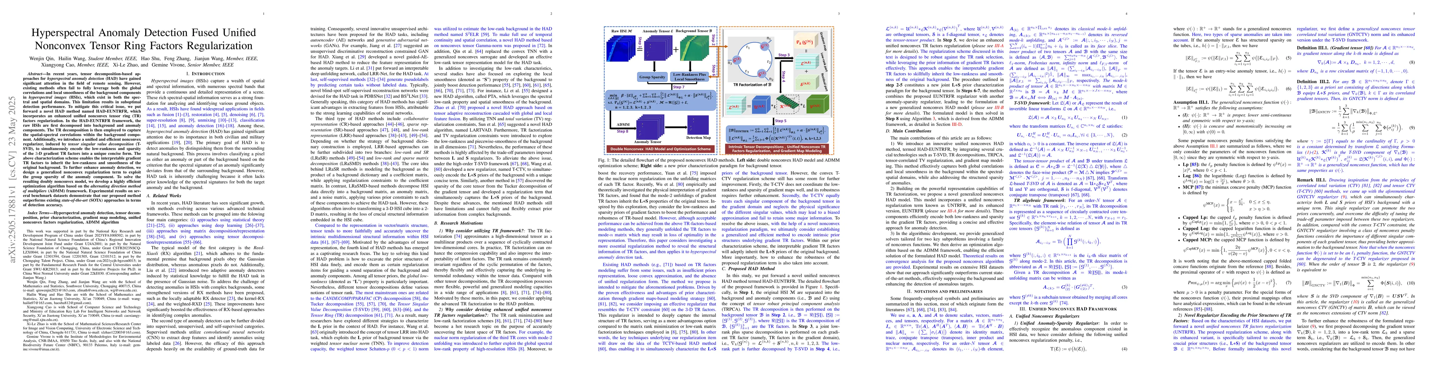 The proposed method, HAD-EUNTRFR, decomposes hyperspectral images into background and anomaly components. It employs unified nonconvex tensor ring (TR) factors regularization to capture spatial-spectral correlations within the background, and introduces a nonconvex regularizer based on tensor singular value decomposition (TSVD) to encode low-rankness and sparsity. Additionally, it exploits group sparsity of the anomaly component through a generalized nonconvex regularization term, solved via an ADMM-based optimization algorithm.