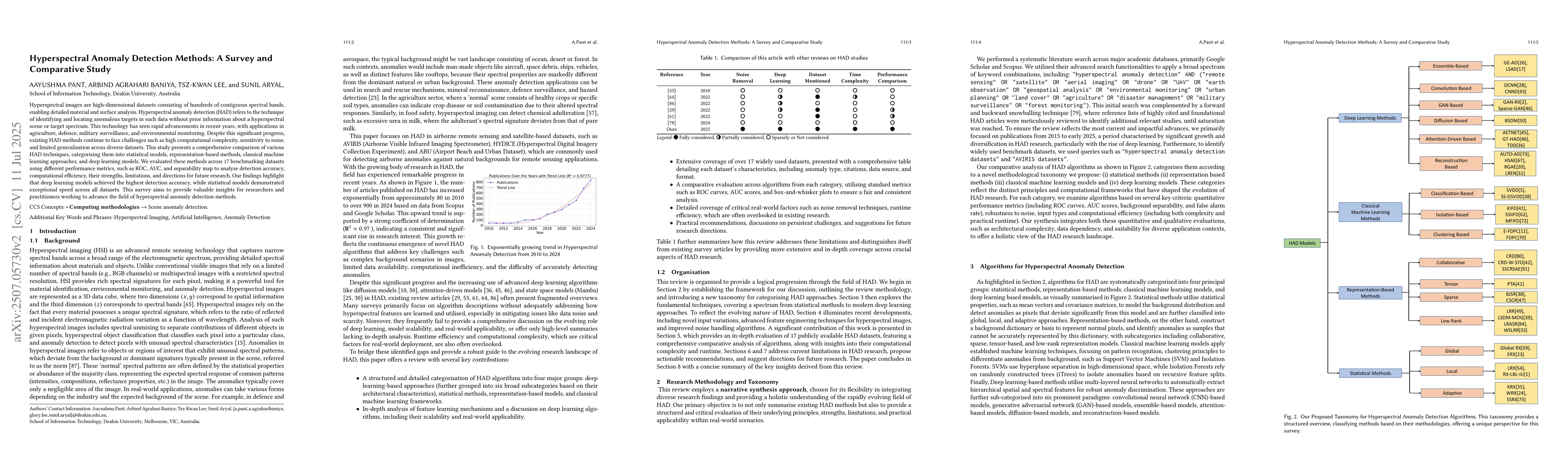 Hyperspectral images are high-dimensional datasets comprising hundreds of contiguous spectral bands, enabling detailed analysis of materials and surfaces. Hyperspectral anomaly detection (HAD) refers to the technique of identifying and locating anomalous targets in such data without prior information about a hyperspectral scene or target spectrum. This technology has seen rapid advancements in recent years, with applications in agriculture, defence, military surveillance, and environmental monitoring. Despite this significant progress, existing HAD methods continue to face challenges such as high computational complexity, sensitivity to noise, and limited generalisation across diverse datasets. This study presents a comprehensive comparison of various HAD techniques, categorising them into statistical models, representation-based methods, classical machine learning approaches, and deep learning models. We evaluated these methods across 17 benchmarking datasets using different performance metrics, such as ROC, AUC, and separability map to analyse detection accuracy, computational efficiency, their strengths, limitations, and directions for future research. Our findings highlight that deep learning models achieved the highest detection accuracy, while statistical models demonstrated exceptional speed across all datasets. This survey aims to provide valuable insights for researchers and practitioners working to advance the field of hyperspectral anomaly detection methods.