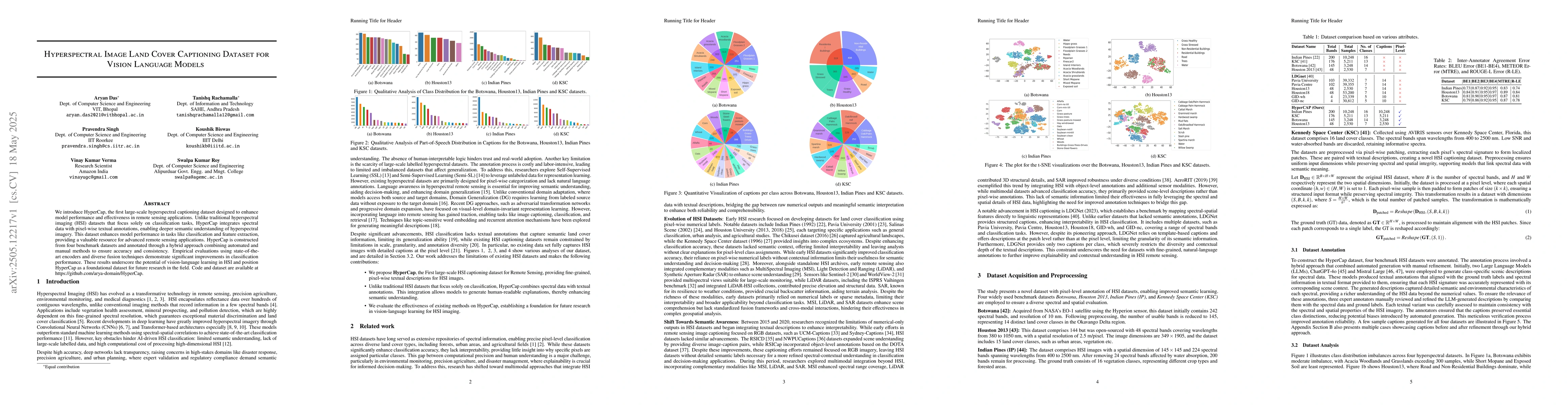 A new hyperspectral image captioning dataset, HyperCap, is introduced to enhance model performance in remote sensing applications, achieving significant improvements in classification accuracy.