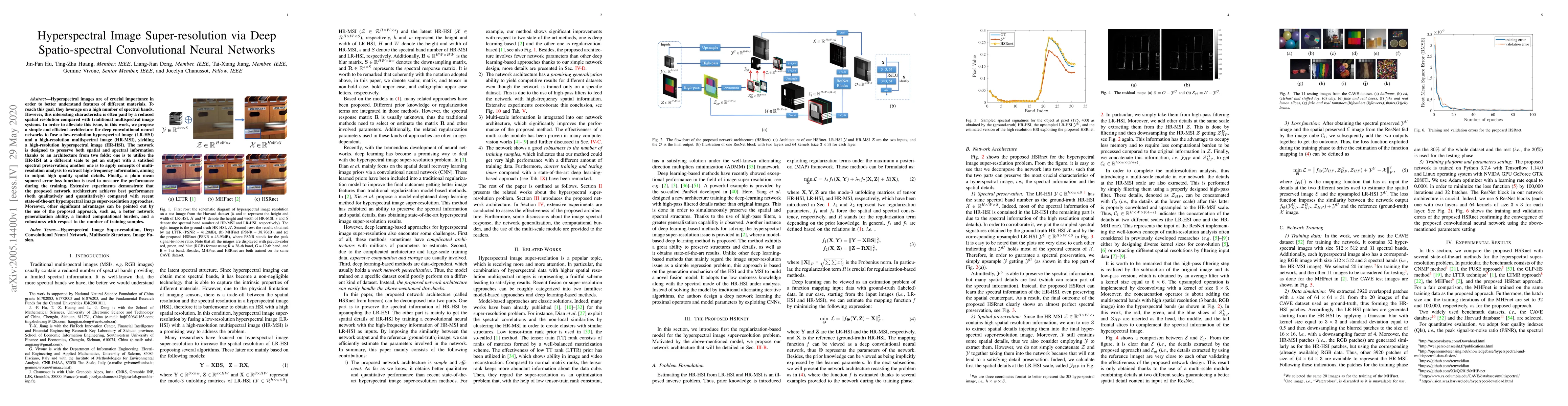 This paper proposes a deep convolutional neural network architecture to enhance the spatial resolution of low-resolution hyperspectral images by fusing them with high-resolution multispectral images. The network preserves spatial and spectral information through multi-resolution analysis and achieves superior performance compared to other state-of-the-art methods, demonstrating better generalization, lower computational cost, and robustness.