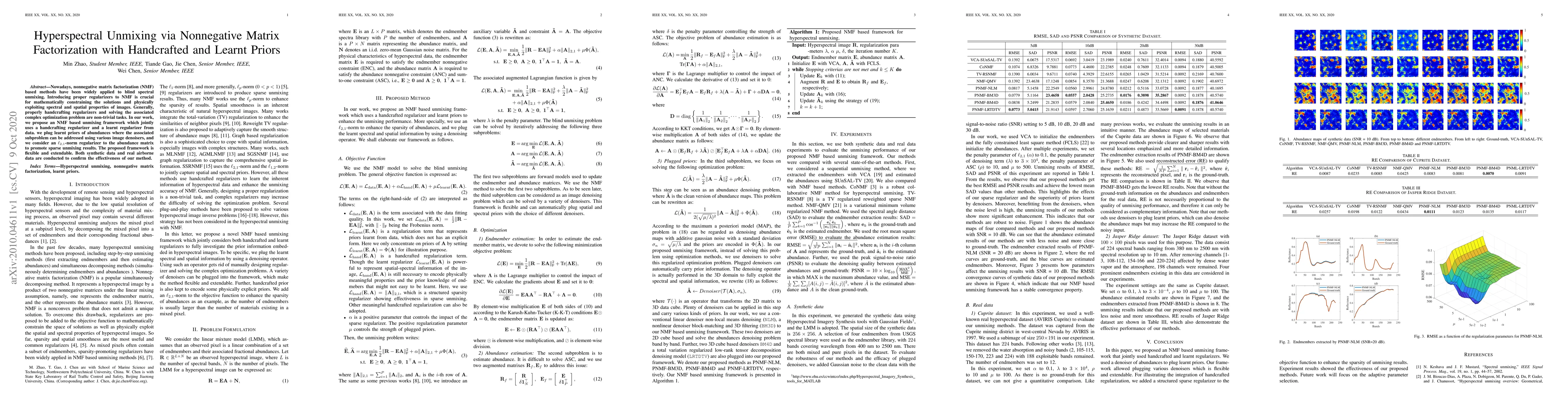 The proposed framework combines flexible regularizers to promote sparse unmixing and effectively handles synthetic and real airborne data.