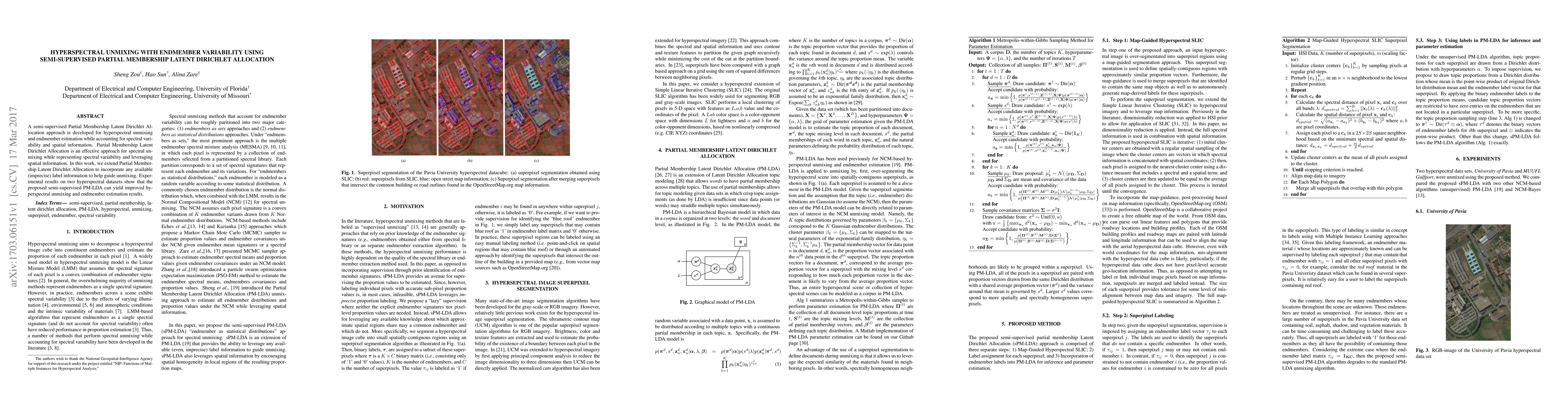 The paper proposes a semi-supervised Partial Membership Latent Dirichlet Allocation method for hyperspectral unmixing, incorporating spectral variability and spatial information, and utilizing imprecise label data to enhance unmixing accuracy. Experimental results demonstrate improved hyperspectral unmixing and endmember estimation performance.