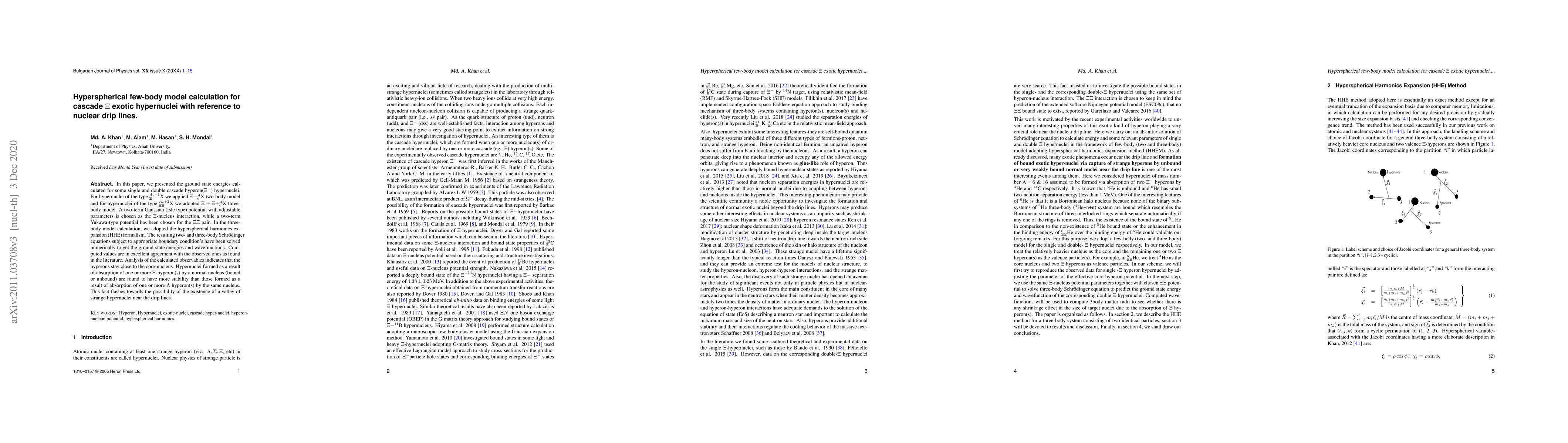 In this paper, we presented the ground state energies calculated for some single and double cascade hyperon(${\Xi}^{-}$) hypernuclei. For hypernuclei of the type $_{\Xi}^{A_c+1}$X we applied $\Xi+^A_c$X two-body model and for hypernuclei of the type $_{\Xi\Xi}^{A_c+2}$X we adopted $\Xi+\Xi+^A_c$X three-body model. A two-term Gaussian (Isle type) potential with adjustable parameters is chosen as the $\Xi$-nucleus interaction, while a two-term Yukawa-type potential has been chosen for the $\Xi\Xi$ pair. In the three-body model calculation, we adopted the hyperspherical harmonics expansion (HHE) formalism. The resulting two- and three-body Schr{\"o}dinger equations subject to appropriate boundary condition's have been solved numerically to get the ground-state energies and wavefunctions. Computed values are in excellent agreement with the observed ones as found in the literature. Analysis of the calculated observables indicates that the hyperons stay close to the core-nucleus. Hypernuclei formed as a result of absorption of one or more $\Xi$-hyperon(s) by a normal nucleus (bound or unbound) are found to have more stability than those formed as a result of absorption of one or more $\Lambda$ hyperon(s) by the same nucleus. This fact flashes towards the possibility of the existence of a valley of strange hypernuclei near the drip lines.