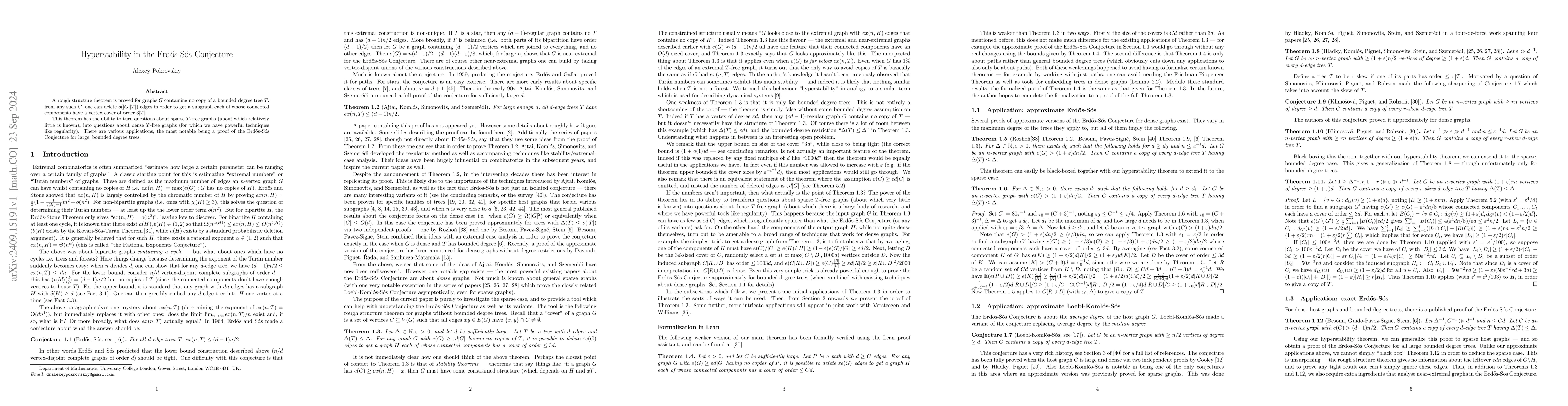 The paper proves a rough structure theorem for graphs without bounded degree tree $T$, allowing deletion of $o(|G||T|)$ edges to yield subgraphs where all components have a cover of order $3|T|$. This facilitates transitioning sparse $T$-free graph questions to dense $T$-free graph questions, notably proving the Erdős-Sós Conjecture for large, bounded degree trees.