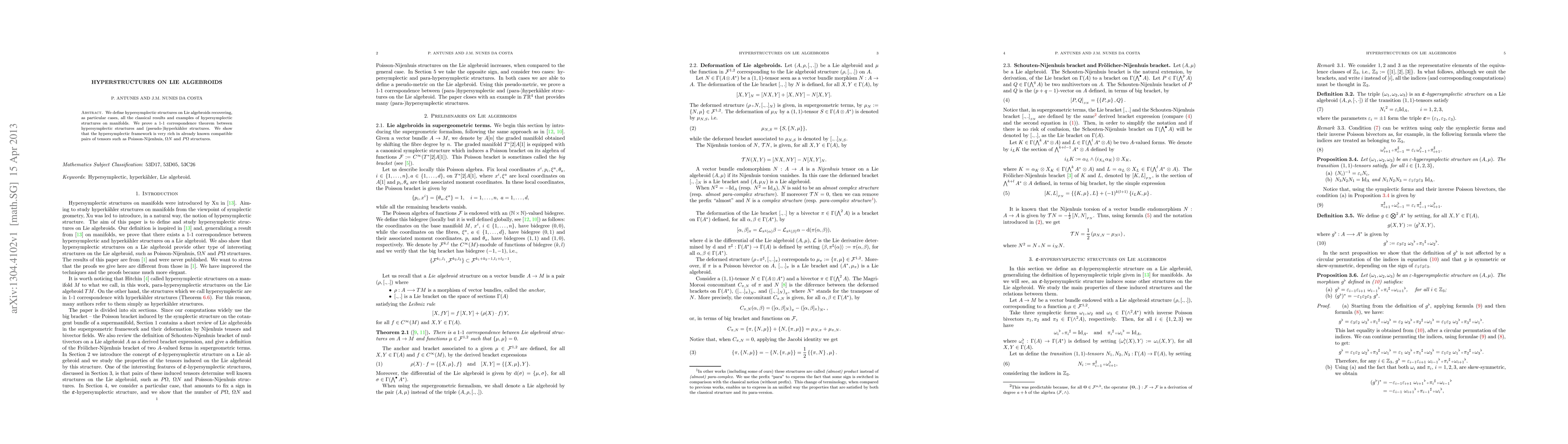 The paper defines hypersymplectic structures on Lie algebroids, establishing a 1-1 correspondence with (pseudo-)hyperkähler structures and demonstrating the richness of known compatible tensor pairs. It recovers classical hypersymplectic structures on manifolds as particular cases.
