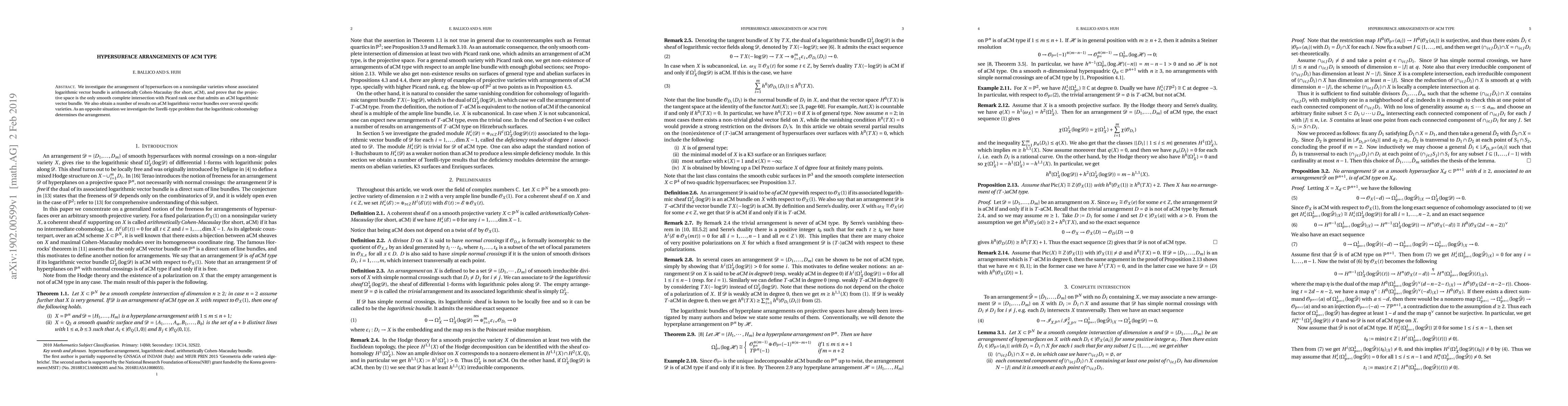 This paper studies hypersurface arrangements on nonsingular varieties with arithmetically Cohen-Macaulay (aCM) logarithmic vector bundles, proving that projective space is the only smooth complete intersection with Picard rank one supporting such arrangements. It also explores the Torelli-type problem regarding the determination of arrangements by logarithmic cohomology.