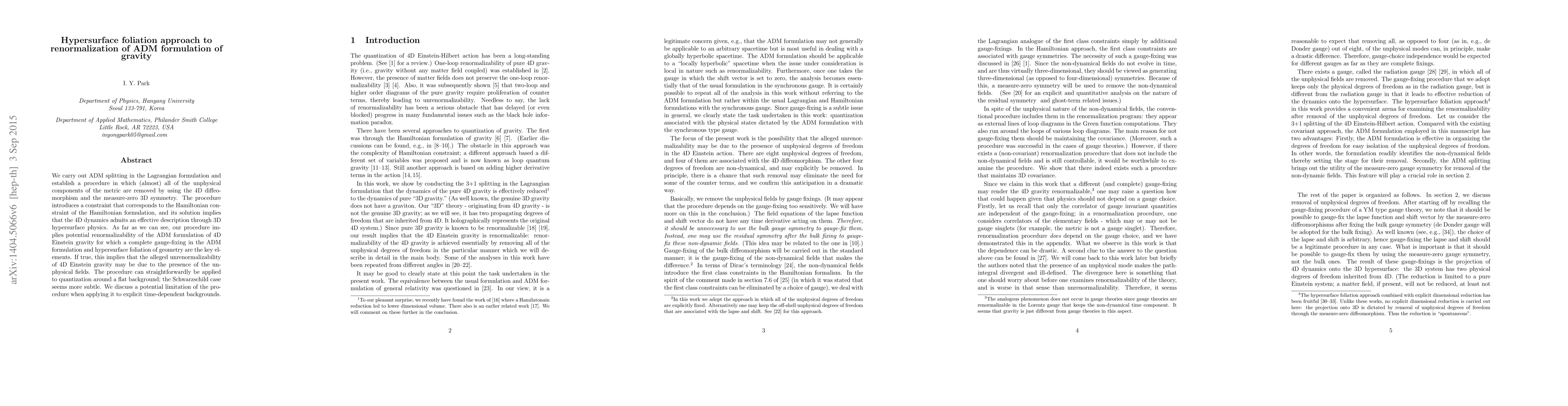 Researchers develop a method to remove unphysical components from the ADM formulation of gravity, suggesting that 4D Einstein gravity may be renormalizable.