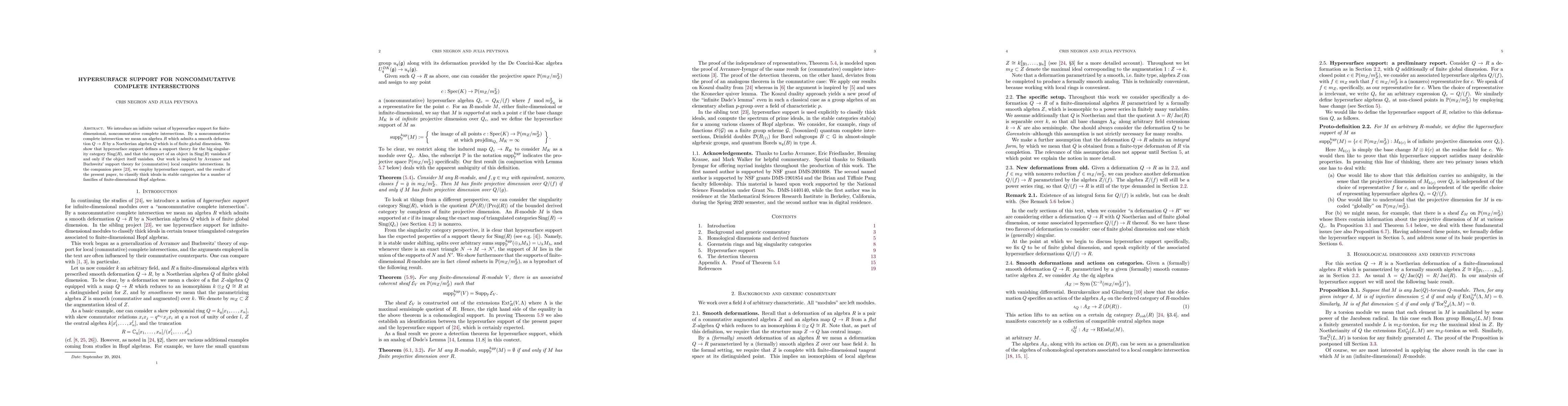 The research introduces an infinite variant of hypersurface support for finite-dimensional, noncommutative complete intersections, inspired by Avramov and Buchweitz's support theory for local complete intersections.