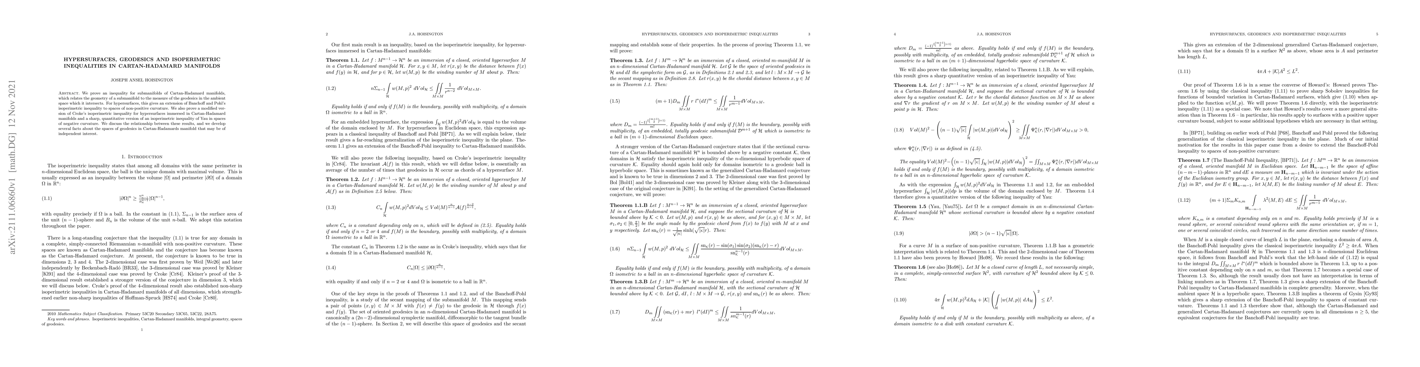 We prove an inequality for submanifolds of Cartan-Hadamard manifolds, which relates the geometry of a submanifold to the measure of the geodesics in the ambient space which it intersects. For hypersurfaces, this gives an extension of Banchoff and Pohl's isoperimetric inequality to spaces of non-positive curvature. We also prove a modified version of Croke's isoperimetric inequality for hypersurfaces immersed in Cartan-Hadamard manifolds and a sharp, quantitative version of an isoperimetric inequality of Yau in spaces of negative curvature. We discuss the relationship between these results, and we develop several facts about the spaces of geodesics in Cartan-Hadamards manifold that may be of independent interest.
