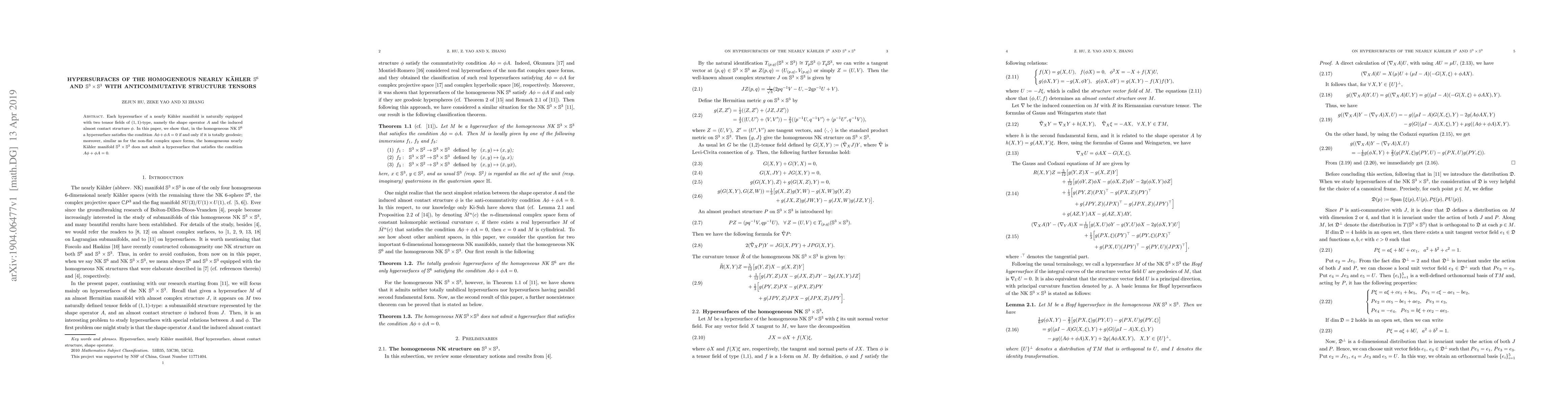 This paper investigates hypersurfaces in homogeneous nearly Kähler manifolds $\mathbb{S}^6$ and $\mathbb{S}^3\times\mathbb{S}^3$, showing that in $\mathbb{S}^6$, a hypersurface is totally geodesic if it satisfies the condition $A\phi+\phi A=0$. In contrast, $\mathbb{S}^3\times\mathbb{S}^3$ does not admit any such hypersurface.