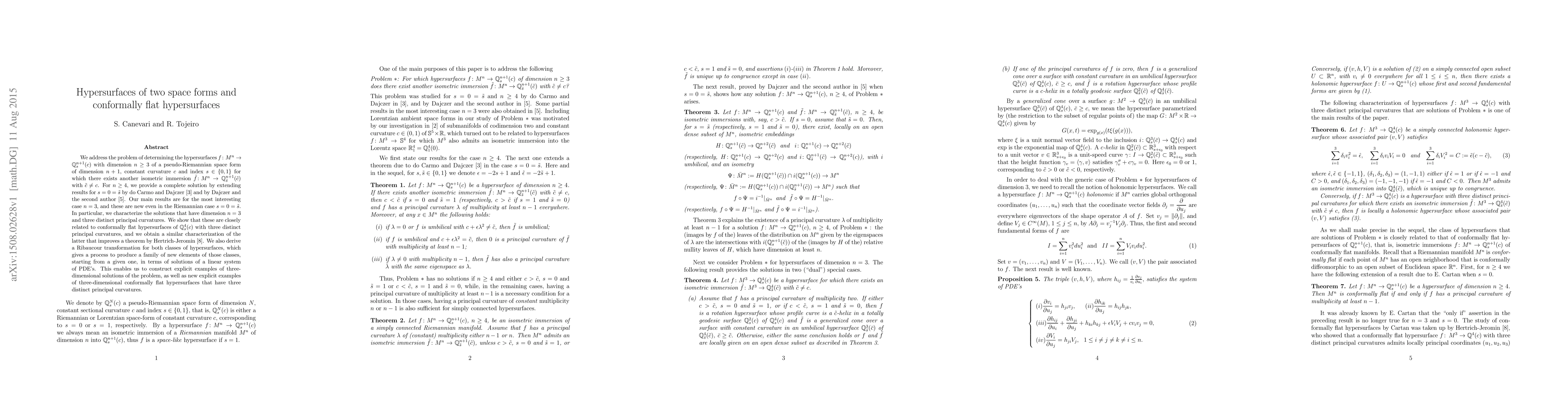 We address the problem of determining the hypersurfaces $f\colon M^{n} \to \mathbb{Q}_s^{n+1}(c)$ with dimension $n\geq 3$ of a pseudo-Riemannian space form of dimension $n+1$, constant curvature $c$ and index $s\in \{0, 1\}$ for which there exists another isometric immersion $\tilde{f}\colon M^{n} \to \mathbb{Q}^{n+1}_{\tilde s}(\tilde{c})$ with $\tilde{c}\neq c$. For $n\geq 4$, we provide a complete solution by extending results for $s=0=\tilde s$ by do Carmo and Dajczer and by Dajczer and the second author. Our main results are for the most interesting case $n=3$, and these are new even in the Riemannian case $s=0=\tilde s$. In particular, we characterize the solutions that have dimension $n=3$ and three distinct principal curvatures. We show that these are closely related to conformally flat hypersurfaces of $\mathbb{Q}_s^{4}(c)$ with three distinct principal curvatures, and we obtain a similar characterization of the latter that improves a theorem by Hertrich-Jeromin. We also derive a Ribaucour transformation for both classes of hypersurfaces, which gives a process to produce a family of new elements of those classes, starting from a given one, in terms of solutions of a linear system of PDE's. This enables us to construct explicit examples of three-dimensional solutions of the problem, as well as new explicit examples of three-dimensional conformally flat hypersurfaces that have three distinct principal curvatures.