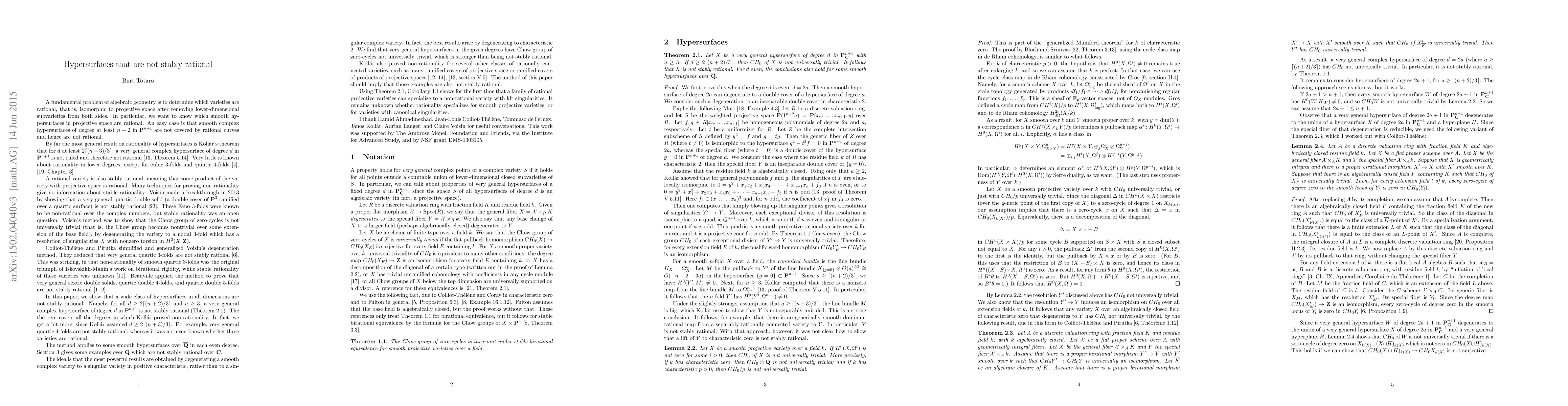 This paper demonstrates that a broad class of complex hypersurfaces, particularly those of sufficiently high degree, are not stably rational. This generalizes previous results on quartic 3-folds and extends to higher dimensions and degrees, including quartic 4-folds, previously uncertain in their rationality.