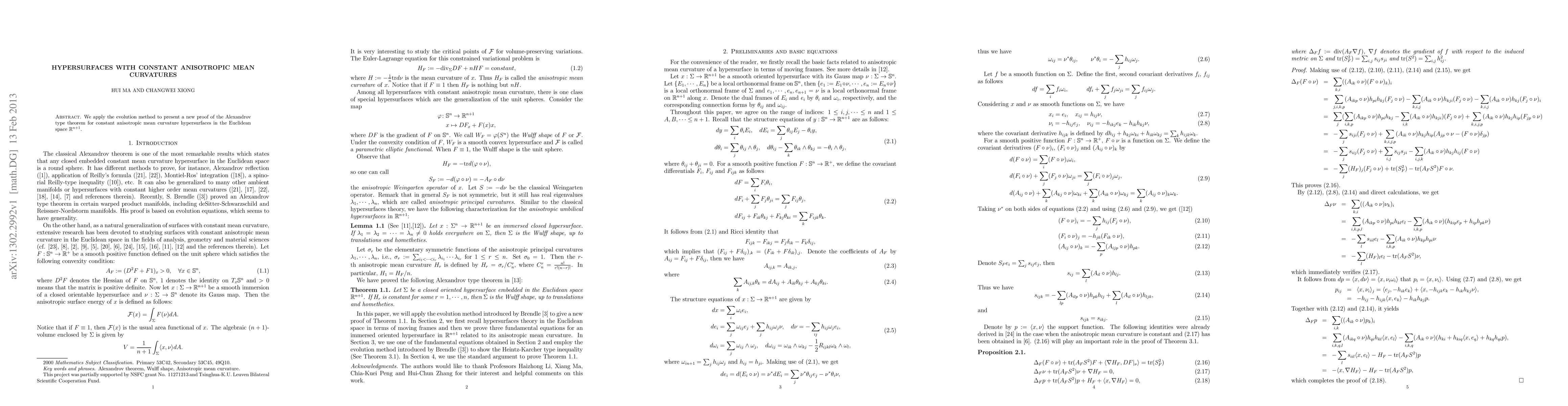 Summary: This paper presents a new proof using the evolution method for the Alexandrov type theorem regarding hypersurfaces in Euclidean space with constant anisotropic mean curvature. The focus is on establishing the geometric properties of such hypersurfaces.