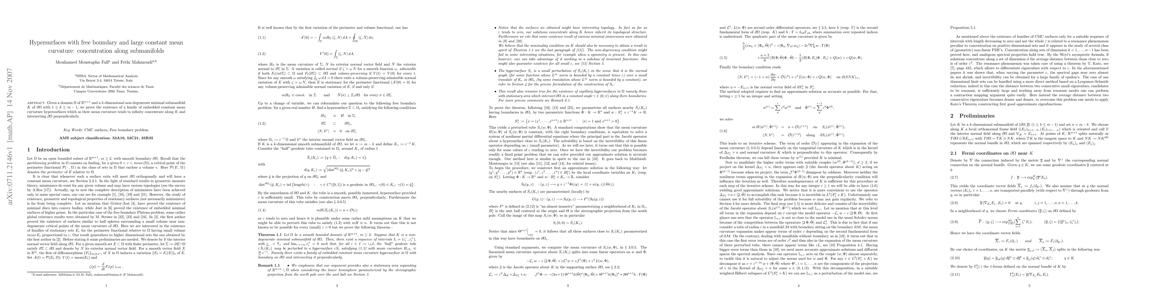 Researchers prove the existence of hypersurfaces with free boundary that concentrate along a submanifold as their mean curvature tends to infinity, intersecting the boundary perpendicularly.