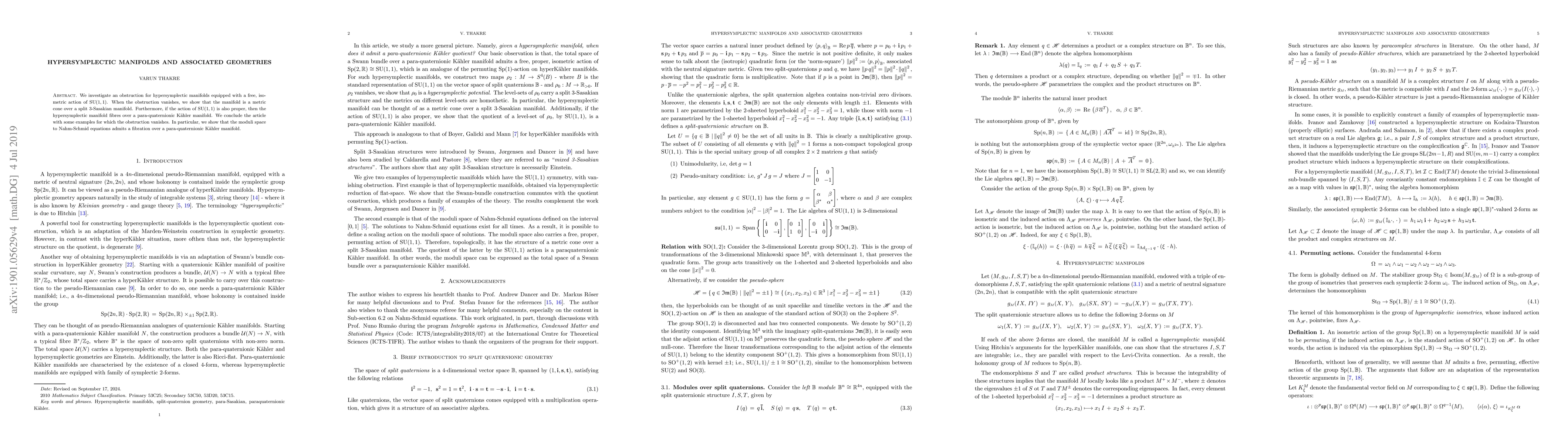 We investigate an obstruction for hypersymplectic manifolds equipped with a free, isometric action of SU(1,1). When the obstruction vanishes, we show that the manifold is a metric cone over a split 3-Sasakian manifold. Furthermore, if the action of SU(1,1) is also proper, then the hypersymplectic manifold fibres over a para-quaternionic Kahler manifold. We conclude the article with some examples for which the obstruction vanishes. In particular, we show that the moduli space to Nahm-Schmid equations admits a fibration over a para-quaternionic Kahler manifold.
