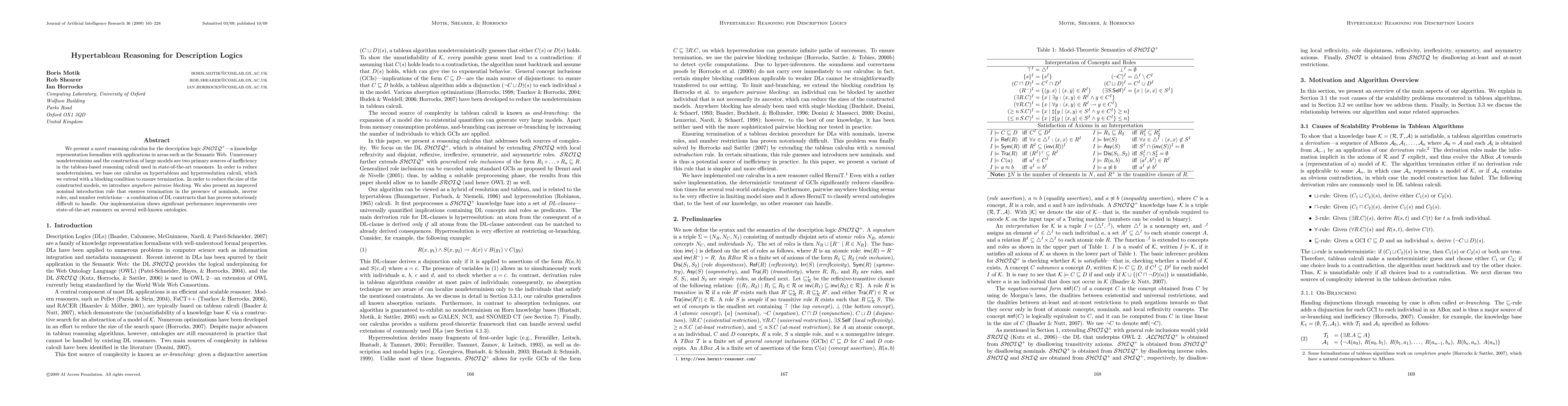This paper introduces a hypertableau reasoning calculus for the SHOIQ^+ description logic, designed to reduce nondeterminism and model size in reasoning processes. The proposed method includes a blocking condition and improved nominal rules, demonstrating significant performance gains over existing reasoners.