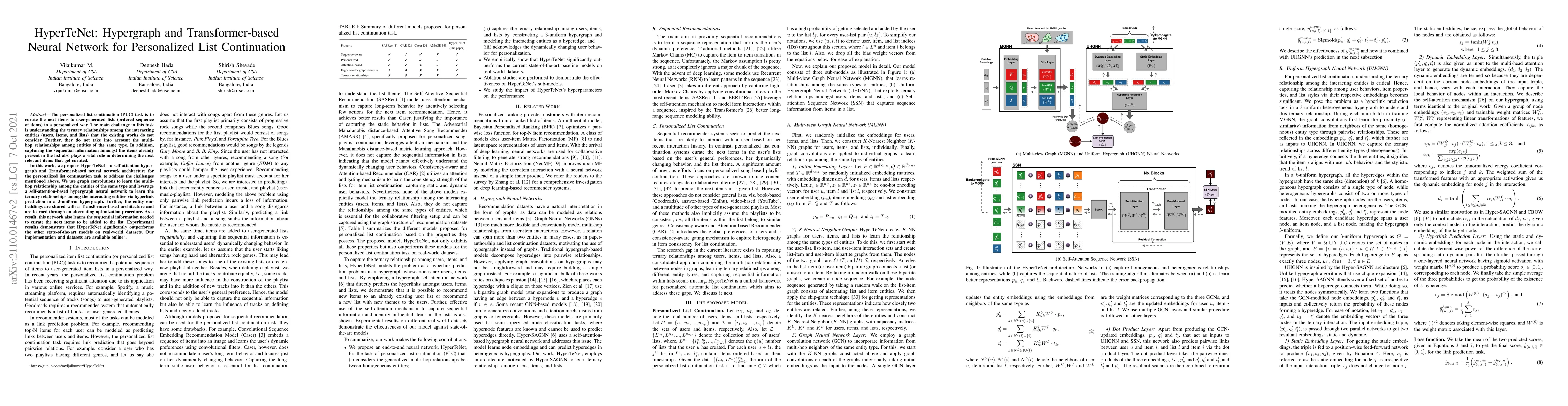 HyperTeNet is a neural network that uses hypergraph convolution and self-attention to predict next items on personalized lists, outperforming existing models with real-world datasets.
