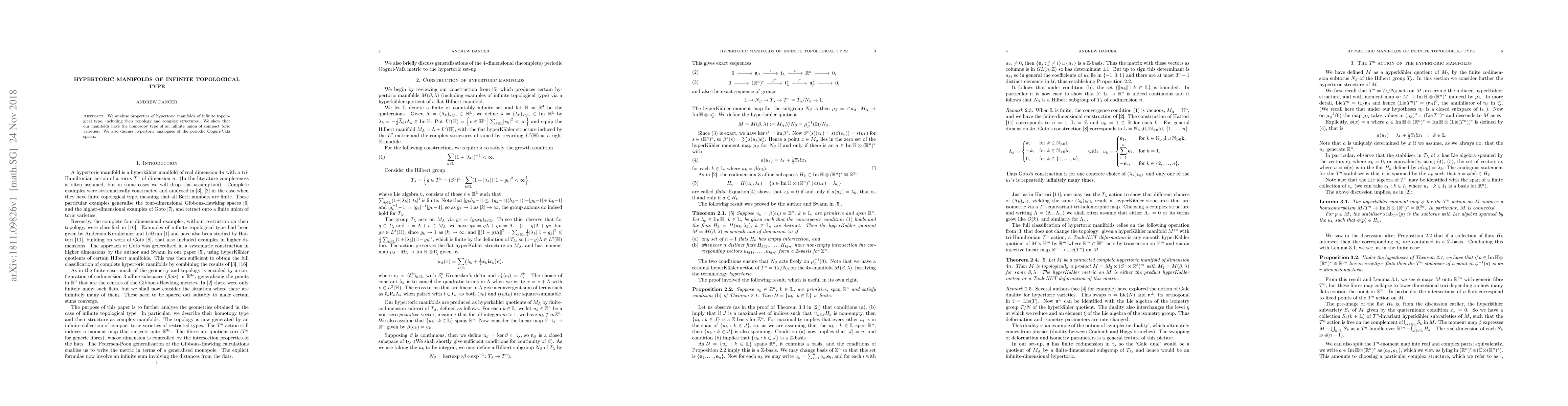 Research finds hypertoric manifolds of infinite topological type have a homotopy type similar to an infinite union of compact toric varieties, with implications for complex structures.