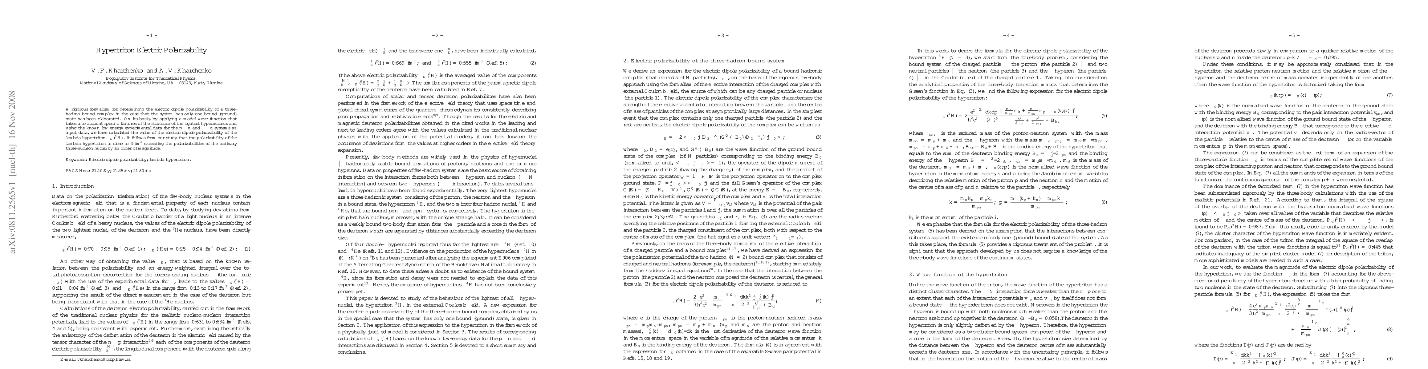 This paper develops a formalism to calculate the electric dipole polarizability of a three-hadron bound complex, specifically the lambda hypertriton. The study finds that the lambda hypertriton's polarizability is approximately 3 fm^3, significantly higher than that of ordinary three-nucleon nuclei.