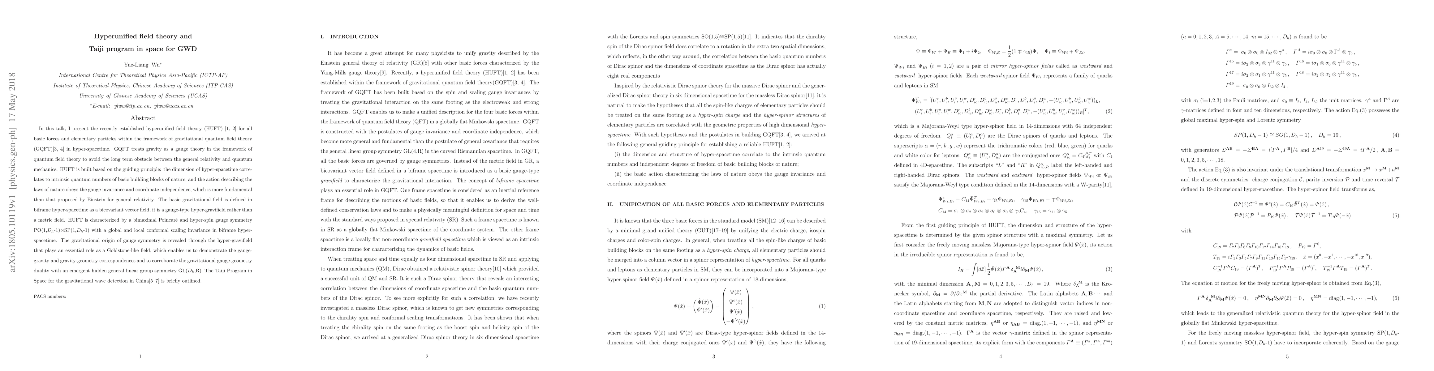 This paper introduces the hyperunified field theory (HUFT), a novel framework for unifying all fundamental forces and particles within gravitational quantum field theory (GQFT), emphasizing gauge invariance and coordinate independence. It also outlines the Taiji Program in Space for gravitational wave detection in China.