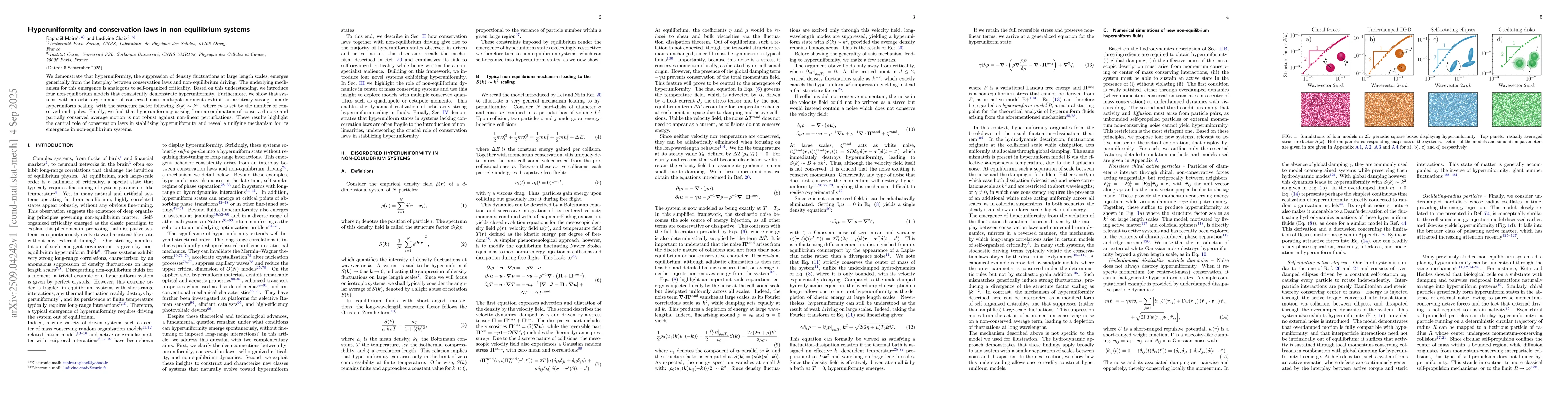We demonstrate that hyperuniformity, the suppression of density fluctuations at large length scales, emerges generically from the interplay between conservation laws and non-equilibrium driving. The underlying mechanism for this emergence is analogous to self-organized criticality. Based on this understanding, we introduce four non-equilibrium models that consistently demonstrate hyperuniformity. Furthermore, we show that systems with an arbitrary number of conserved mass multipole moments exhibit an arbitrary strong tunable hyperuniform scaling, with the structure factor following $S(k) \sim k^m$, where $m$ is set by the number of conserved multipoles. Finally, we find that hyperuniformity arising from a combination of conserved noise and partially conserved average motion is not robust against non-linear perturbations. These results highlight the central role of conservation laws in stabilizing hyperuniformity and reveal a unifying mechanism for its emergence in non-equilibrium systems.