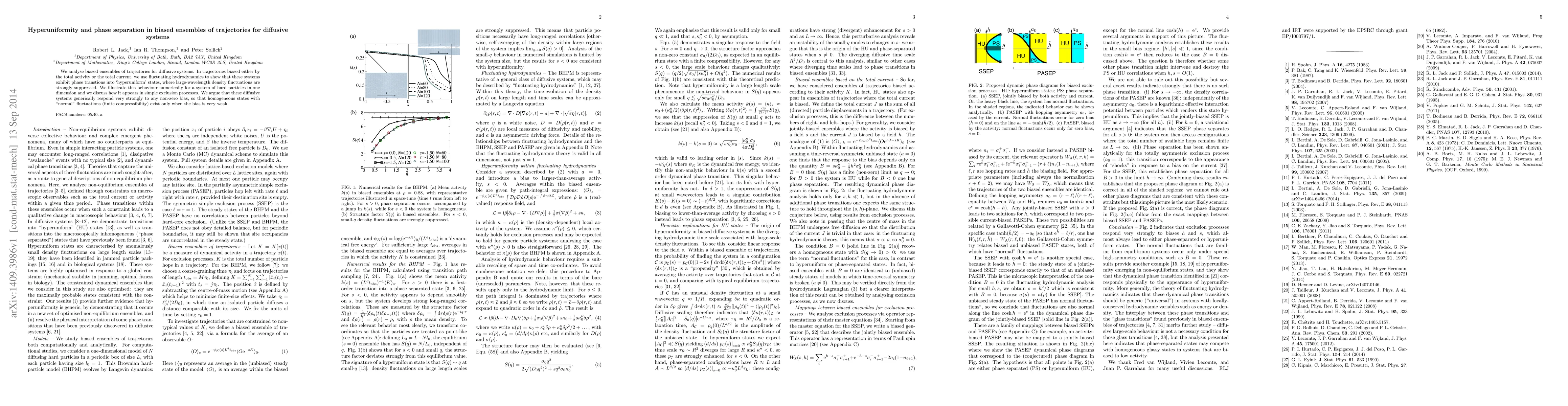 This paper investigates biased ensembles of diffusive systems, demonstrating that they undergo phase transitions into hyperuniform states with suppressed large-wavelength density fluctuations under non-zero bias. Numerical simulations of a one-dimensional hard particle system illustrate this behavior, highlighting the strong response of such systems to any bias.