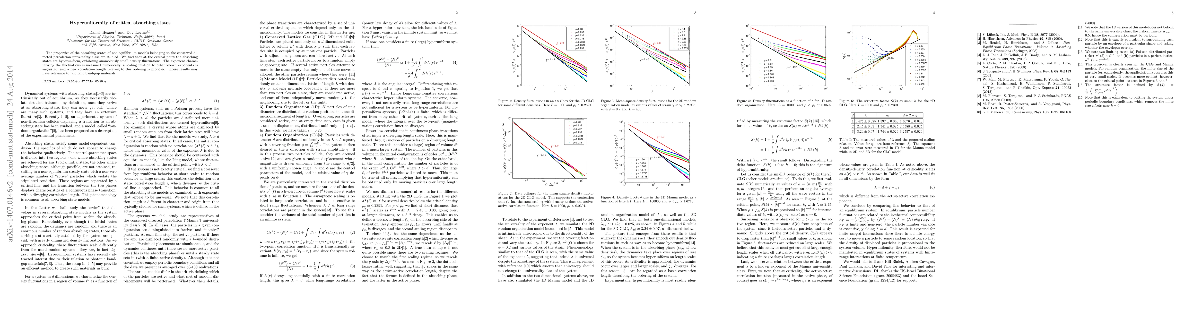 Researchers found that at the critical point of a certain type of non-equilibrium model, the absorbing states exhibit hyperuniformity with anomalously small density fluctuations. This phenomenon may have relevance to materials like photonic band-gap materials.
