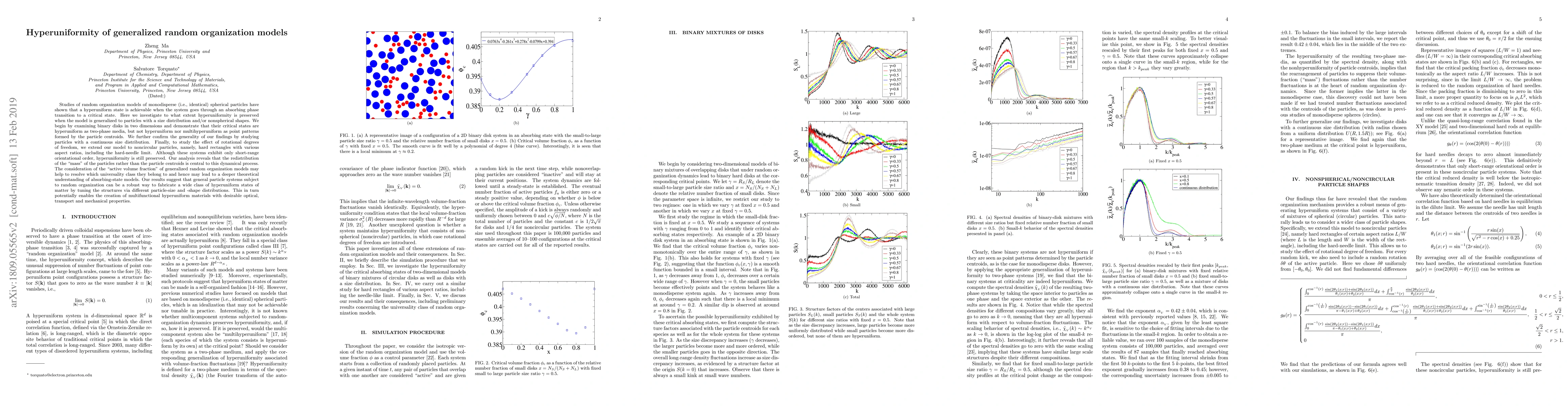 Studies of random organization models of monodisperse spherical particles have shown that a hyperuniform state is achievable when the system goes through an absorbing phase transition to a critical state. Here we investigate to what extent hyperuniformity is preserved when the model is generalized to particles with a size distribution and/or nonspherical shapes. We begin by examining binary disks in two dimensions and demonstrate that their critical states are hyperuniform as two-phase media, but not hyperuniform nor multihyperuniform as point patterns formed by the particle centroids. We further confirm the generality of our findings by studying particles with a continuous size distribution. Finally, to study the effect of rotational degrees of freedom, we extend our model to noncircular particles, namely, hard rectangles with various aspect ratios, including the hard-needle limit. Although these systems exhibit only short-range orientational order, hyperuniformity is still preserved. Our analysis reveals that the redistribution of the "mass" of the particles rather than the particle centroids is central to this dynamical process. The consideration of the "active volume fraction" of generalized random organization models may help to resolve which universality class they belong to and hence may lead to a deeper theoretical understanding of absorbing-state models. Our results suggest that general particle systems subject to random organization can be a robust way to fabricate a wide class of hyperuniform states of matter by tuning the structures via different particle-size and -shape distributions. This in turn potentially enables the creation of multifunctional hyperuniform materials with desirable optical, transport, and mechanical properties.