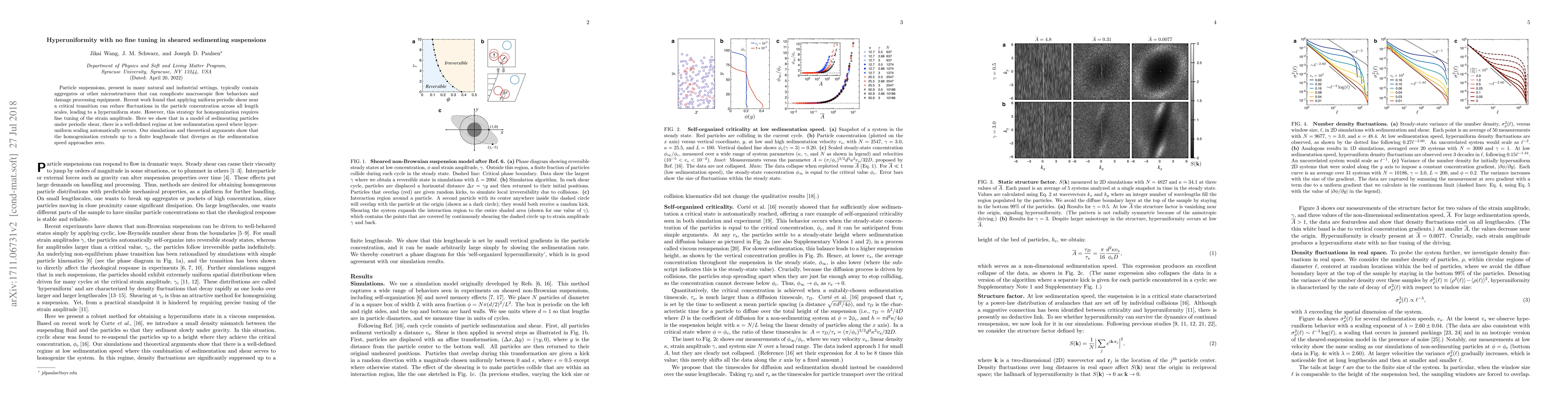 This research identifies a regime in slowly sedimenting particle suspensions under periodic shear, where hyperuniformity emerges automatically without fine-tuning the shear amplitude. Simulations and theory suggest this homogenization extends up to a length scale that grows with decreasing sedimentation speed.