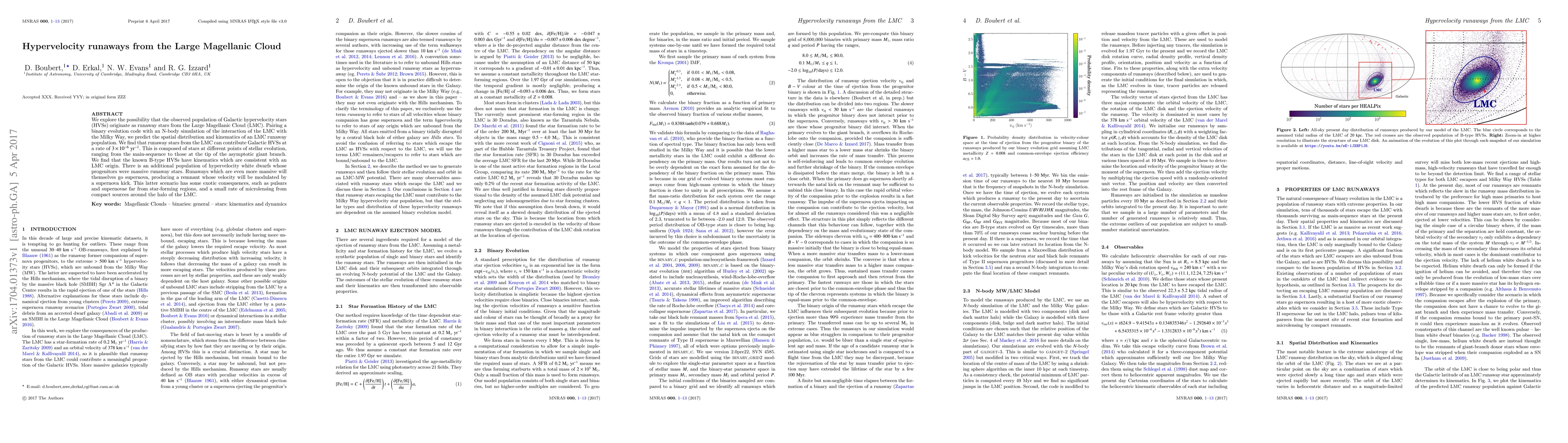 We explore the possibility that the observed population of Galactic hypervelocity stars (HVSs) originate as runaway stars from the Large Magellanic Cloud (LMC). Pairing a binary evolution code with an N-body simulation of the interaction of the LMC with the Milky Way, we predict the spatial distribution and kinematics of an LMC runaway population. We find that runaway stars from the LMC can contribute Galactic HVSs at a rate of $3 \times 10^{-6}\;\mathrm{yr}^{-1}$. This is composed of stars at different points of stellar evolution, ranging from the main-sequence to those at the tip of the asymptotic giant branch. We find that the known B-type HVSs have kinematics which are consistent with an LMC origin. There is an additional population of hypervelocity white dwarfs whose progenitors were massive runaway stars. Runaways which are even more massive will themselves go supernova, producing a remnant whose velocity will be modulated by a supernova kick. This latter scenario has some exotic consequences, such as pulsars and supernovae far from star-forming regions, and a small rate of microlensing from compact sources around the halo of the LMC.