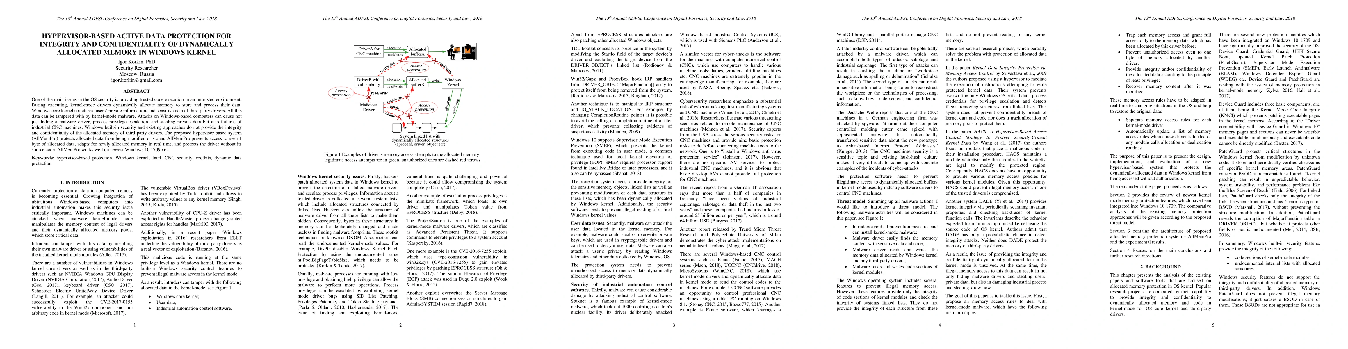This paper proposes AllMemPro, a hypervisor-based system to ensure the integrity and confidentiality of dynamically allocated memory in Windows kernel-mode drivers, addressing vulnerabilities in existing Windows security measures. AllMemPro dynamically protects allocated memory without requiring driver source code, effectively safeguarding against malware attacks.