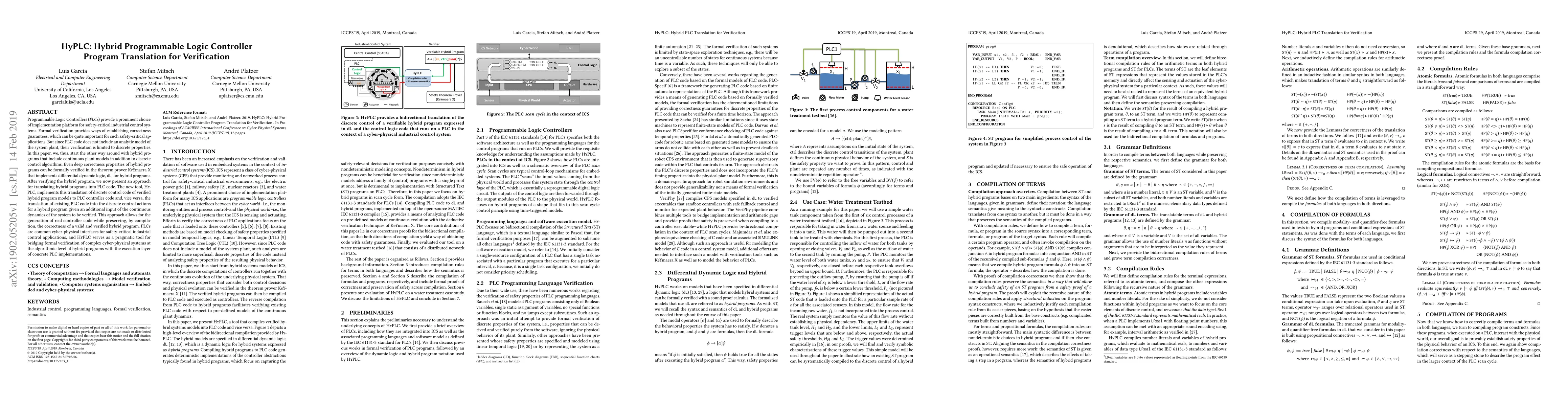 This paper introduces HyPLC, a tool that translates verified hybrid programs, combining continuous plant models and discrete control algorithms, into PLC controller code. It leverages formal verification using KeYmaera X and aims to bridge the gap between the formal correctness of hybrid programs and practical PLC implementations in safety-critical industrial control systems.