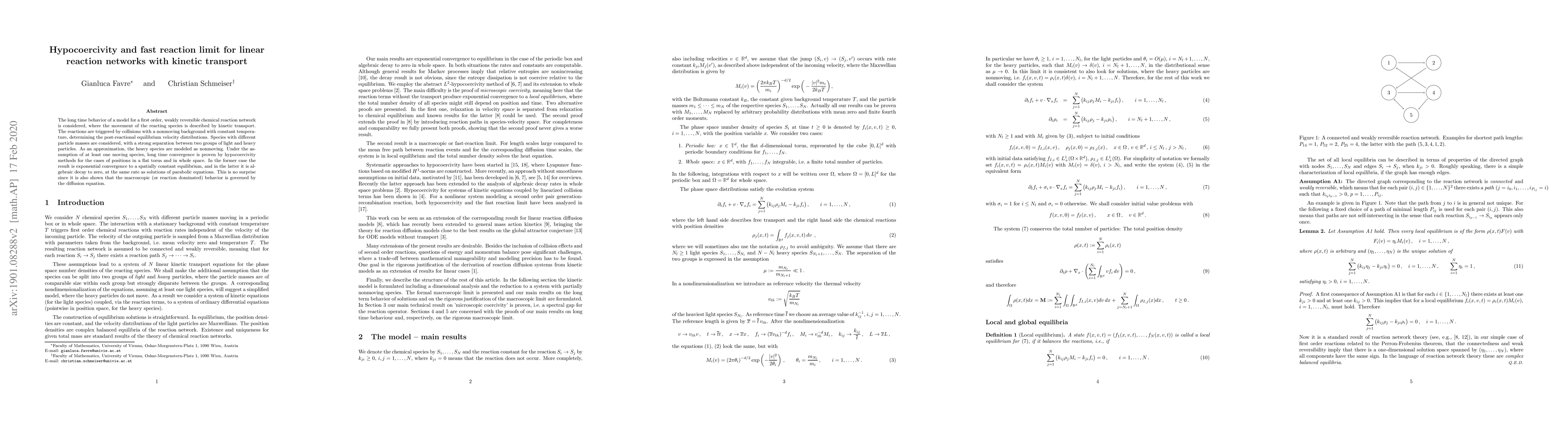 A mathematical model predicts that a mixture of light and heavy particles in a chemical reaction network will converge to equilibrium at the same rate as solutions to parabolic equations, regardless of whether the system is confined or unrestricted.