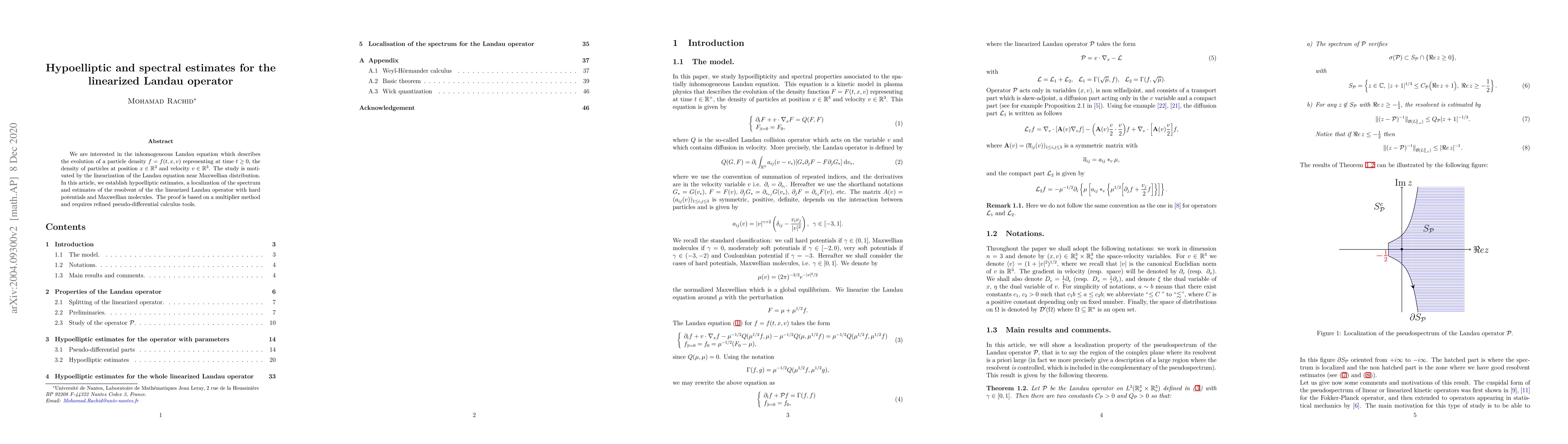 This paper establishes hypoelliptic estimates and spectral properties for the linearized Landau operator, focusing on the evolution of particle density near Maxwellian distribution. The proof utilizes a multiplier method and advanced pseudo-differential calculus techniques.