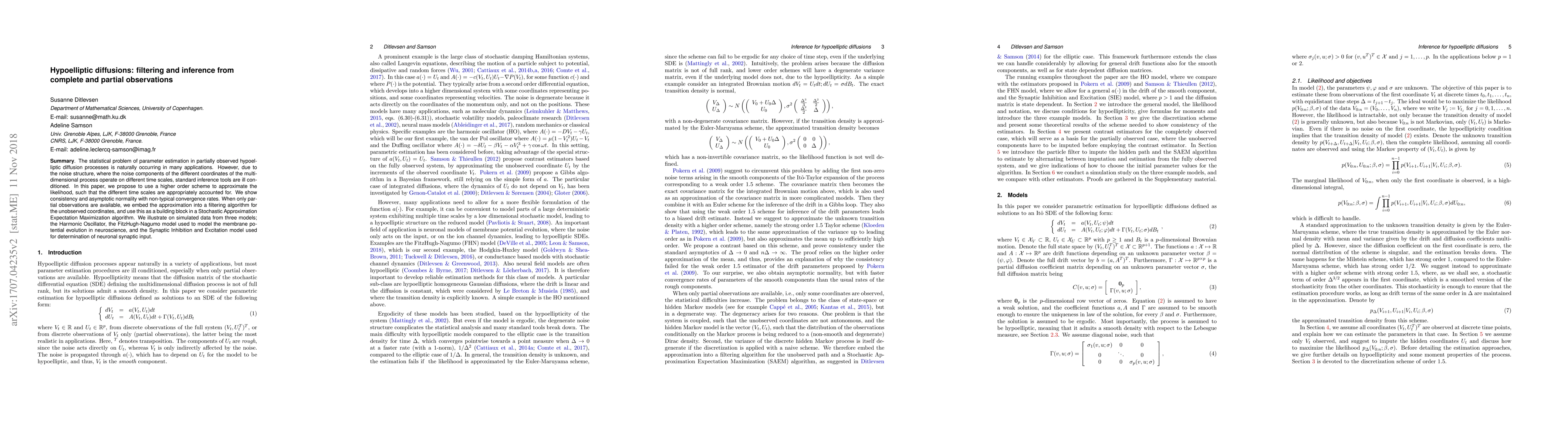 This paper proposes a higher-order scheme for parameter estimation in partially observed hypoelliptic diffusion processes, addressing the challenge of different time scales in noise. It demonstrates consistency and asymptotic normality, and integrates the approximation into a filtering algorithm for unobserved coordinates, illustrated with models from neuroscience.