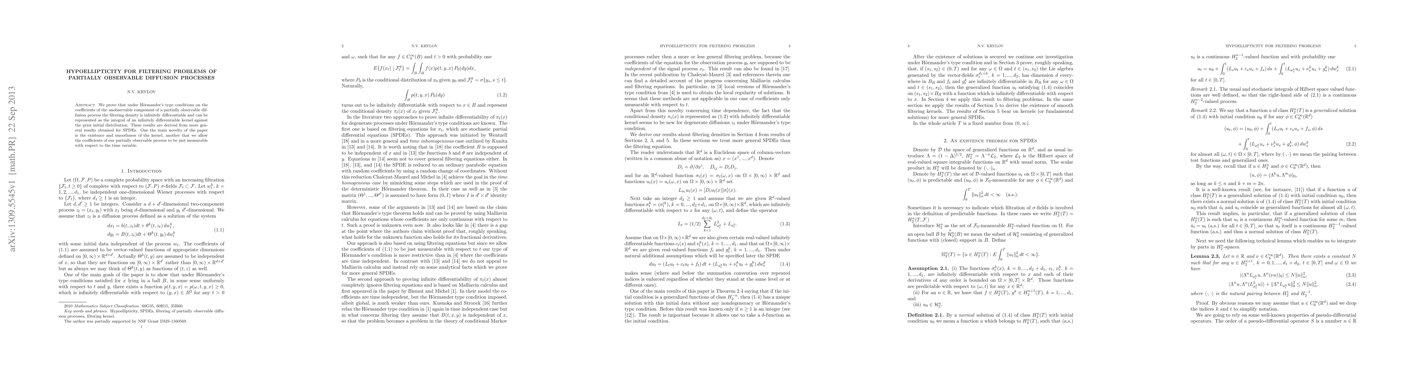Researchers prove that filtering densities for partially observable diffusion processes can be represented as integrals of infinitely differentiable kernels against prior distributions, under specific conditions.